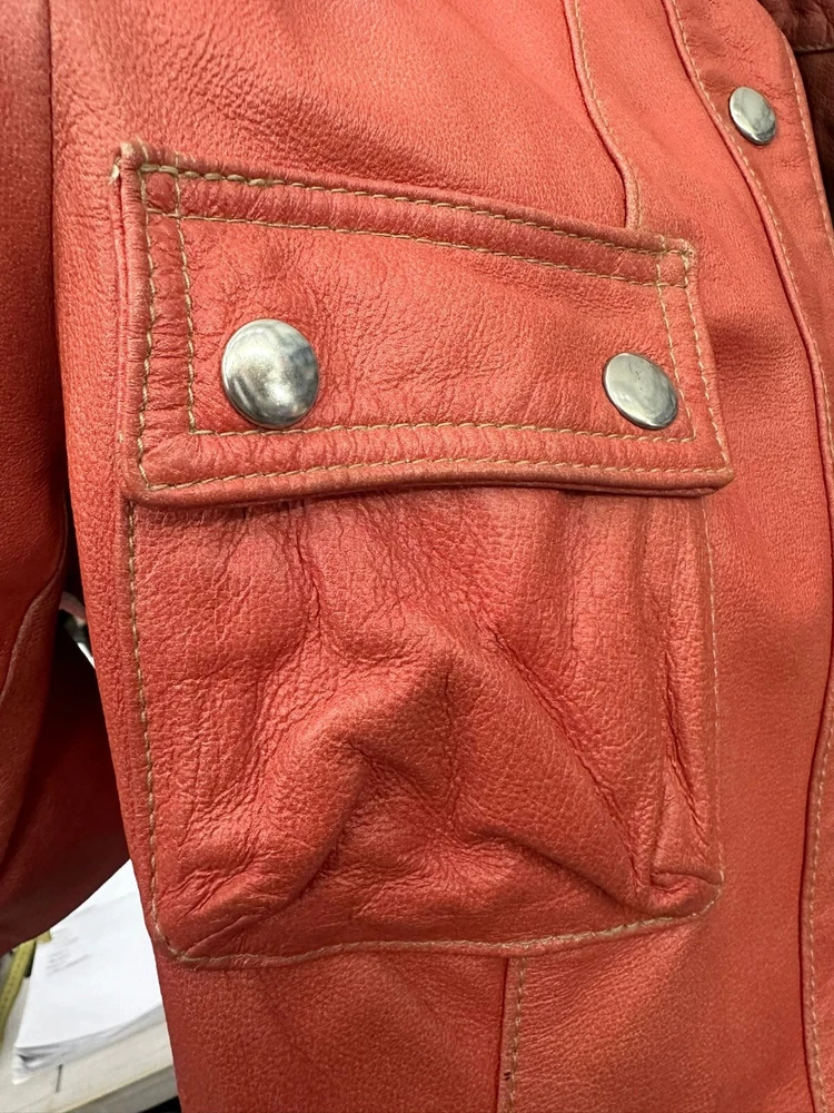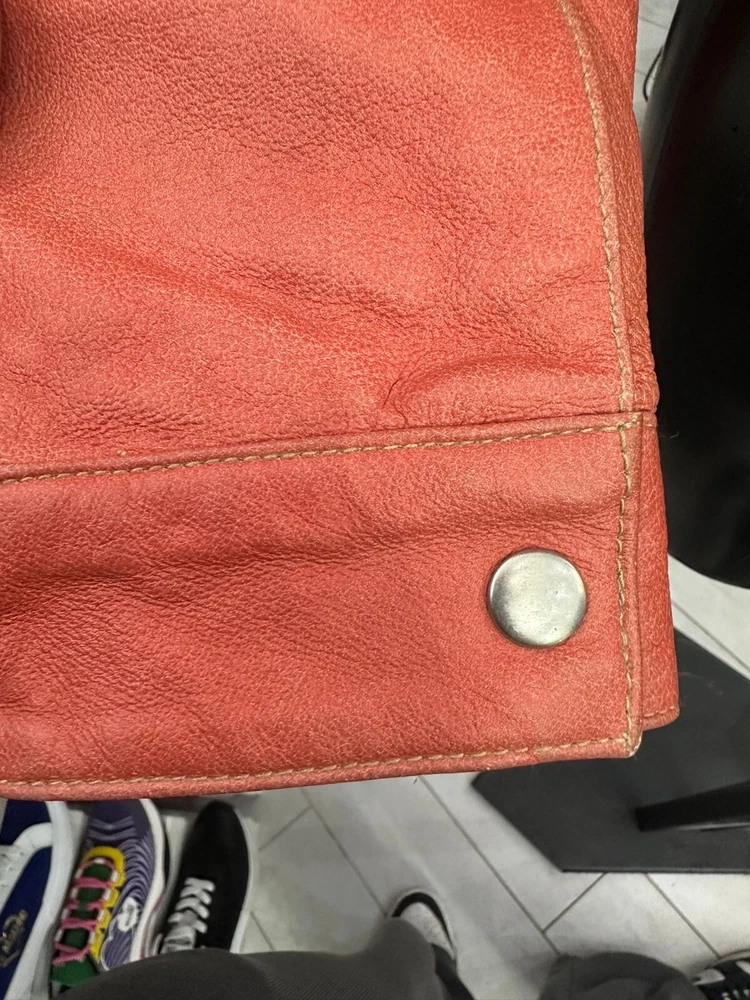 Bagatt Leather Jacket Used Man size 42 Red LLV419 Worn Missing Buttons Bagatt Leather Jacket Used Man size 42 Red LLV419 Worn Missing Buttons