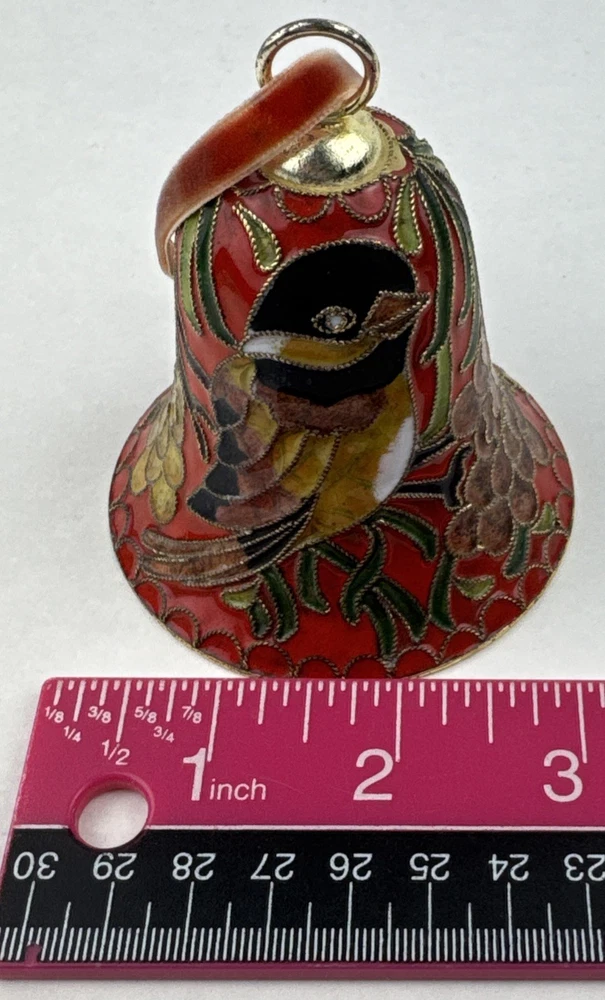 HomeVintage Red Enameled Cloisonne Bird Bell Floral Ornament