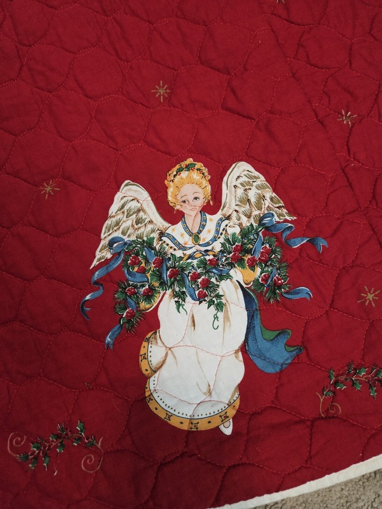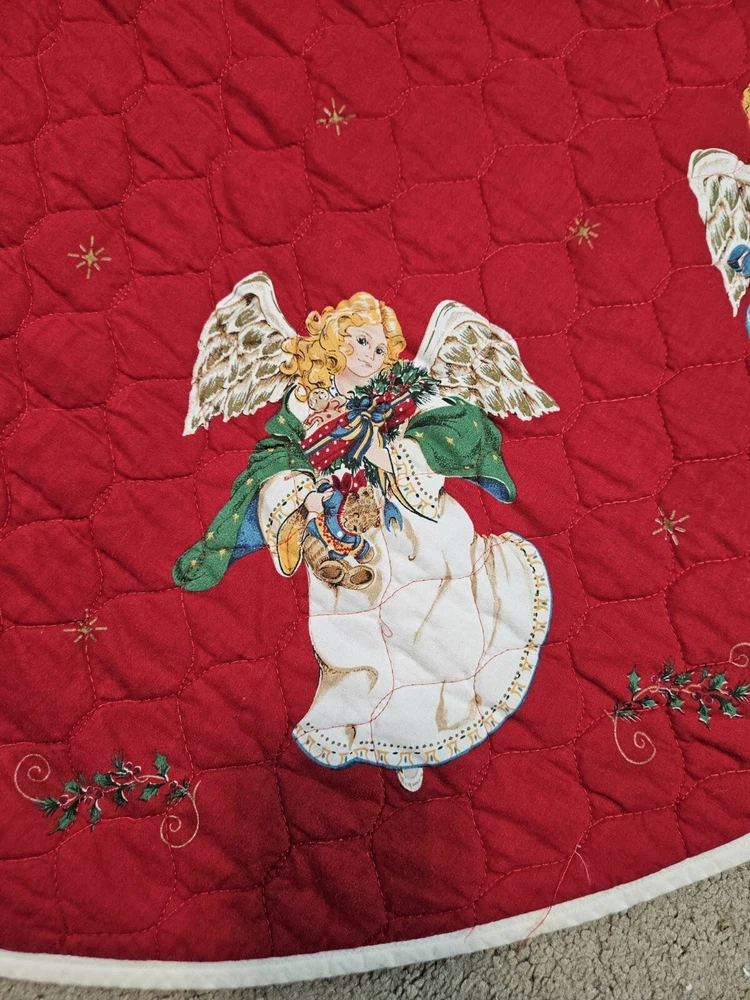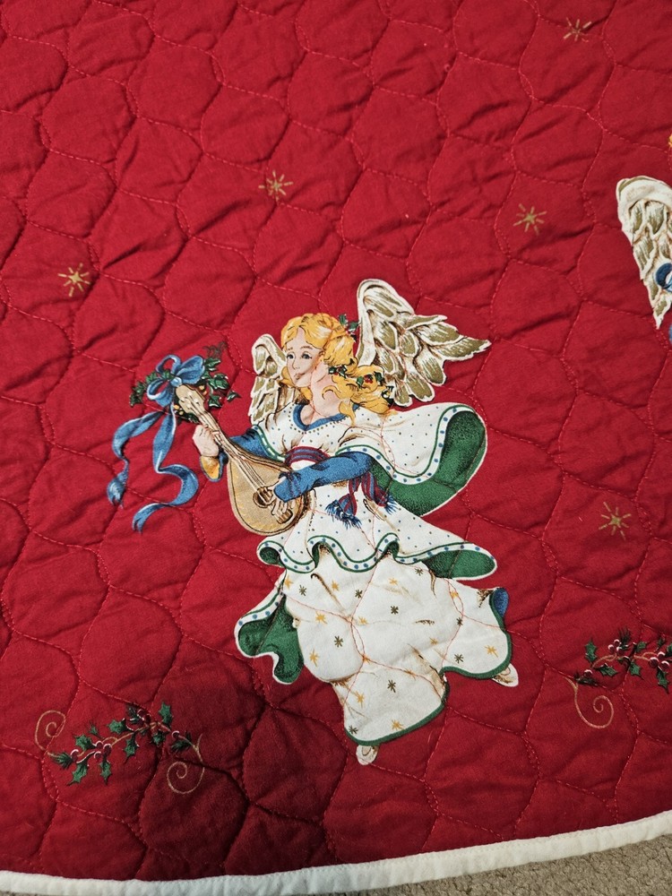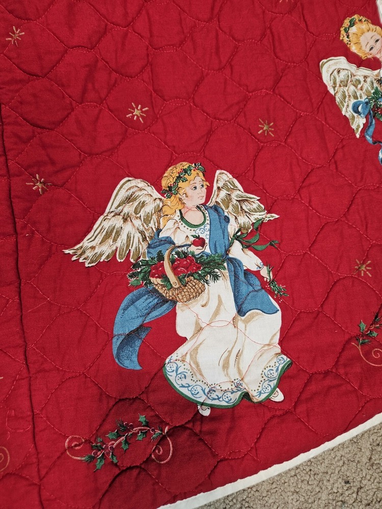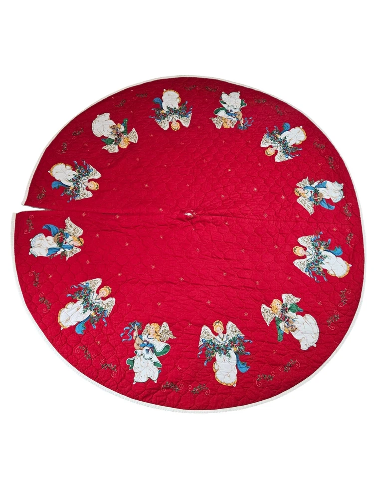 Vintage Handmade Red Quilted Christmas Tree Skirt Victorian Angels 54" x 54" V41 In excellent condition Vintage Handmade Red Quilted Christmas Tree Skirt Victorian Angels 54" x 54". Features handmade red quilted cotton Christmas tree skirt, Victorian angels around tree skirt in different scenes and outfits, large back slit, vintage tree skirt. Measurements diameter 54" This is a pre-owned item that may show signs of wear. In excellent condition, no flaws. 14 Day returns accepted under the following conditions: Item must be in the same condition as stated If item shows additional wear buyer will receive a partial refund Buyer pays all shipping costs Refund amount will be for the item price only Please contact me prior to starting a return