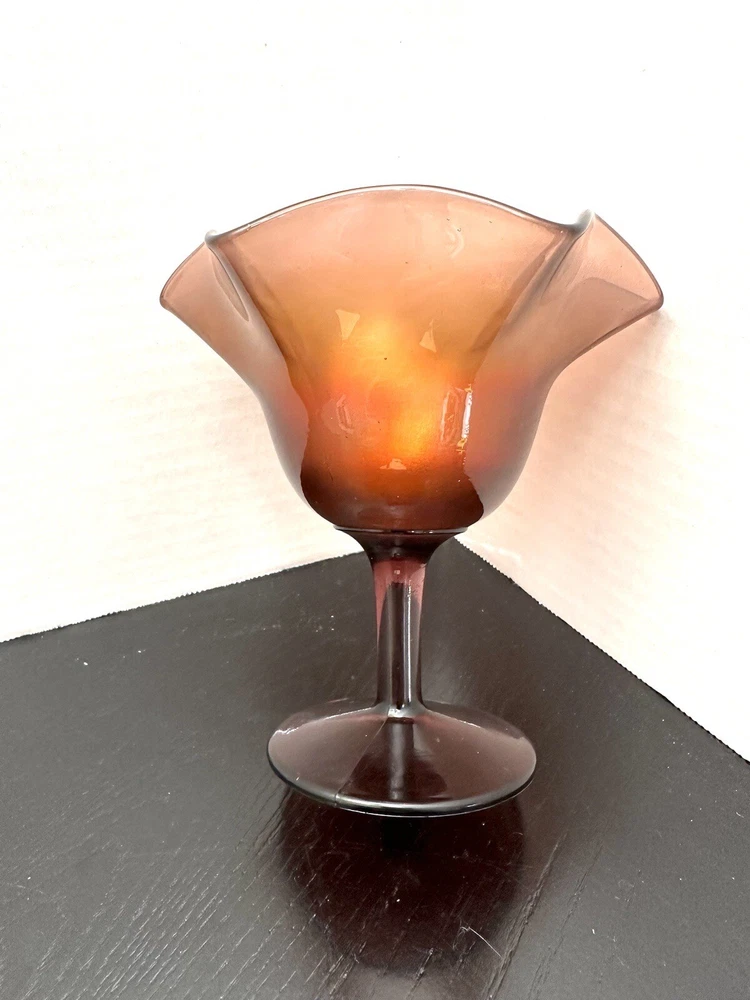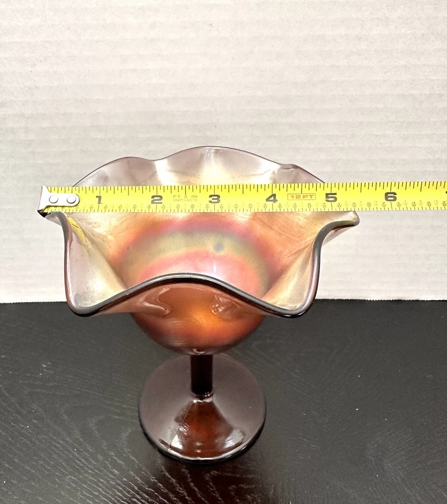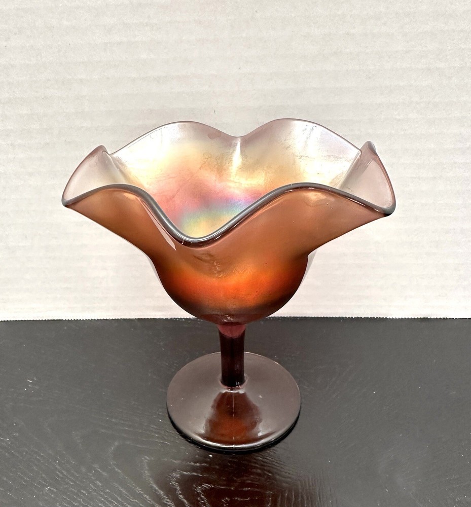 Vintage Ruffled Edge Red Carnival Glass Compote Candy Dish