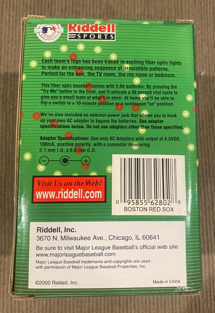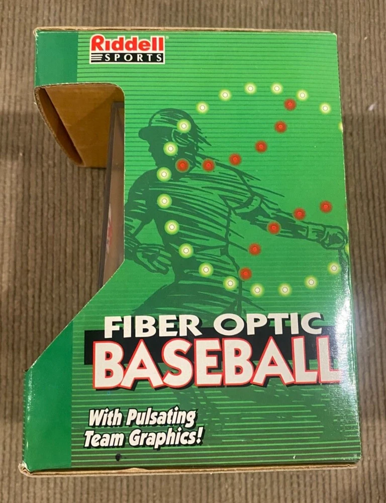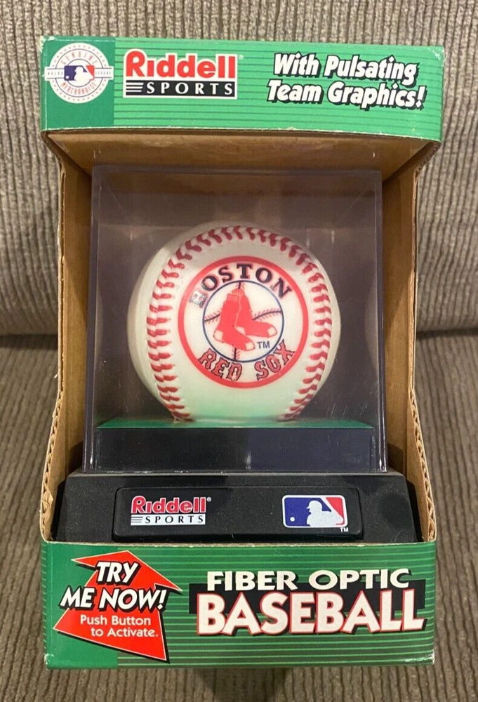 This vintage Riddell sports baseball glove is a must-have for any Boston Red Sox fan. With its fiber optic design, this glove is perfect for catching the game's brightest stars. Made in the year 2000, it is a true collector's item for any baseball enthusiast. The glove is ready to be worn and displayed, making it a great addition to any sports fan's collection.
