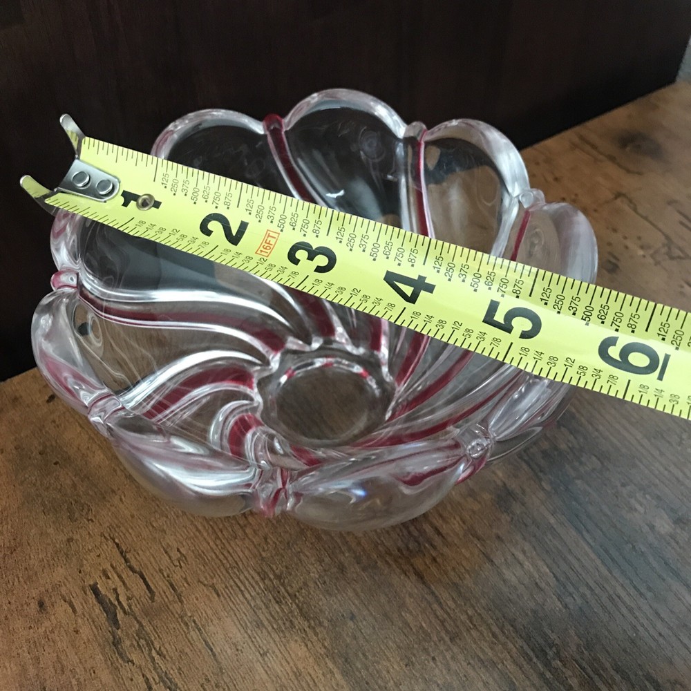 Add a touch of vintage charm to your holiday decor with this beautiful red swirl trinket or mint candy bowl. Perfect for the Christmas season, this bowl is sure to be a hit with guests and family members alike. The intricate design and vibrant color make it a unique addition to your collection of holiday decorations. Crafted with care and attention to detail, this bowl is ideal for storing small treats or as a decorative piece. Its rich red color is sure to stand out on any table or mantle, making it a great conversation starter. Whether you're looking to add to your collection of holiday collectibles or simply want to bring some festive cheer into your home, this beautiful swirl bowl is the perfect choice.