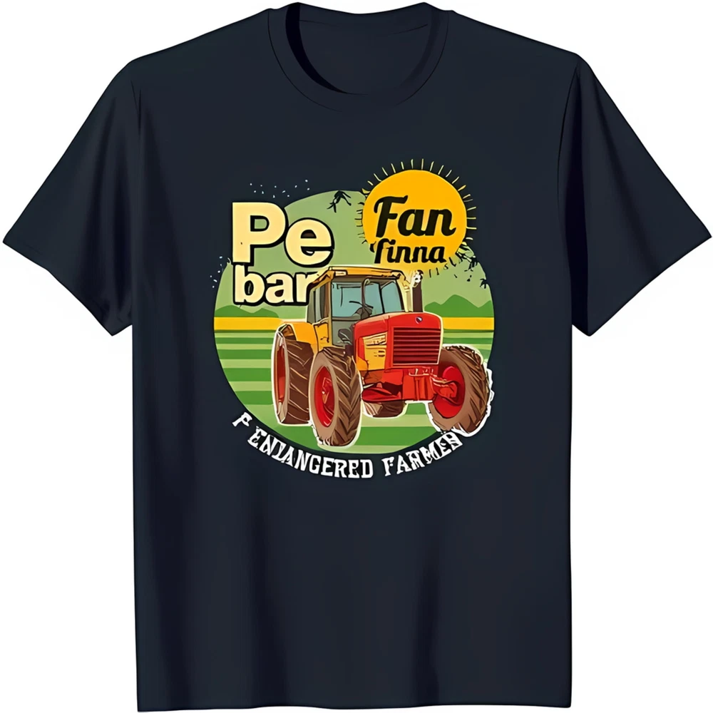 Vintage Red Tractor Graphic T-Shirt 'Endangered Farmers' Design on Dark
