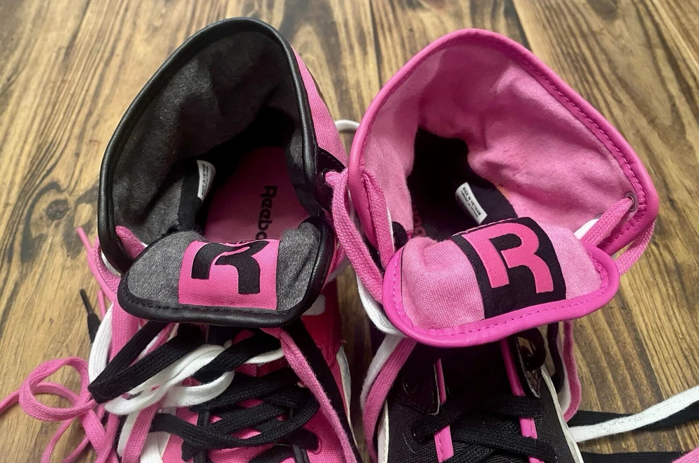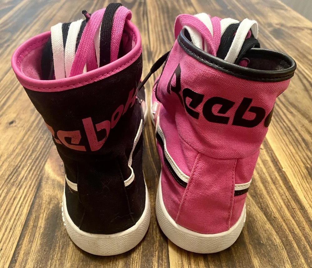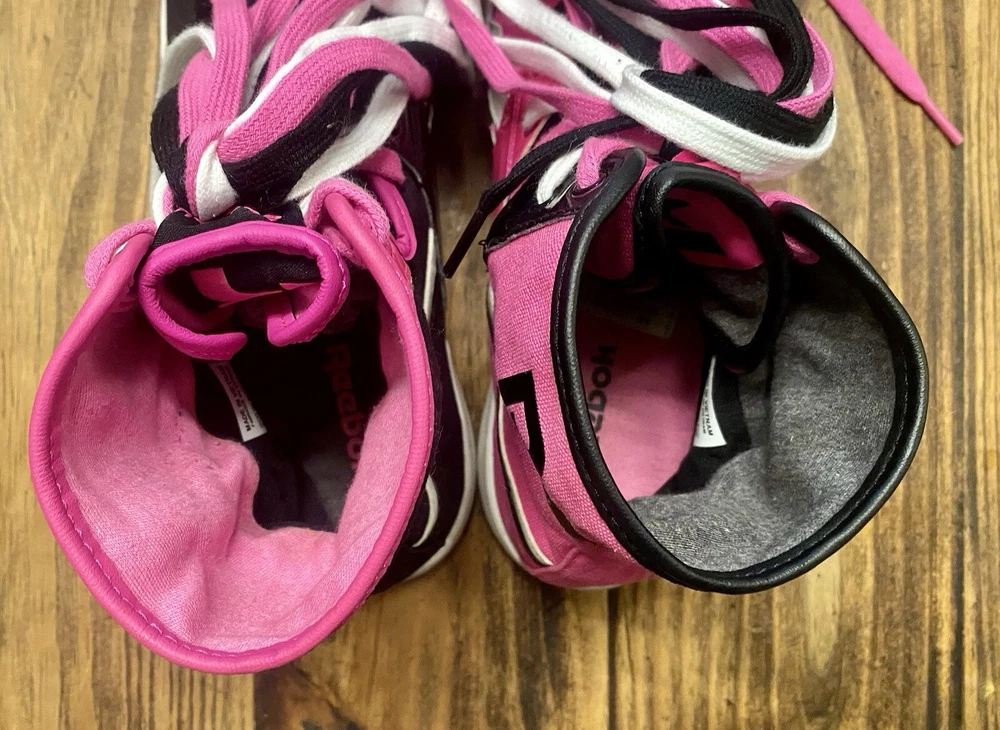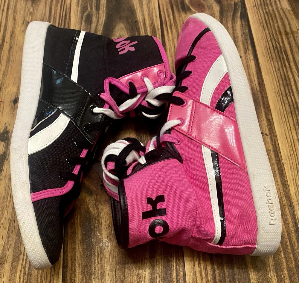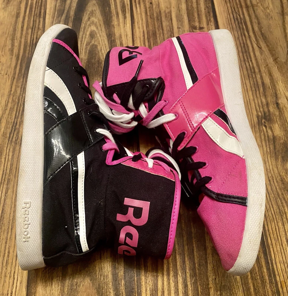 The product is a pair of Vintage Reebok Top Down Splitz women's athletic sneakers in a hot pink and black color combination. The shoes feature a UK shoe size of 7, US shoe size of 9.5, and EU shoe size of 40.5. They belong to the Reebok Run product line and have a retro style, making them a nostalgic choice for sneaker enthusiasts. The model number is V53684, and the brand is Reebok. These sneakers are a stylish and comfortable option for women looking for a unique addition to their footwear collection.