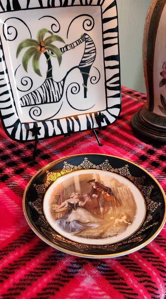 This vintage collector plate from England's Regency era is a beautiful piece to add to any collection. The plate features a colorful design of sweet oranges and is made of bone china for a luxurious feel. The brass encased frame adds to its unique charm, making it a great display item for any room. Its stackable feature also makes it a convenient addition to a collector's shelf. The plate weighs 12.7 oz and is perfect for all occasions. 🟨🟨🟨 Keep in mind that if there are any flaws, it will be on the pictures.🟨🟨🟨 ❤️❤️❤️ Thank you for visiting my shop! I’m happy to answer any questions.