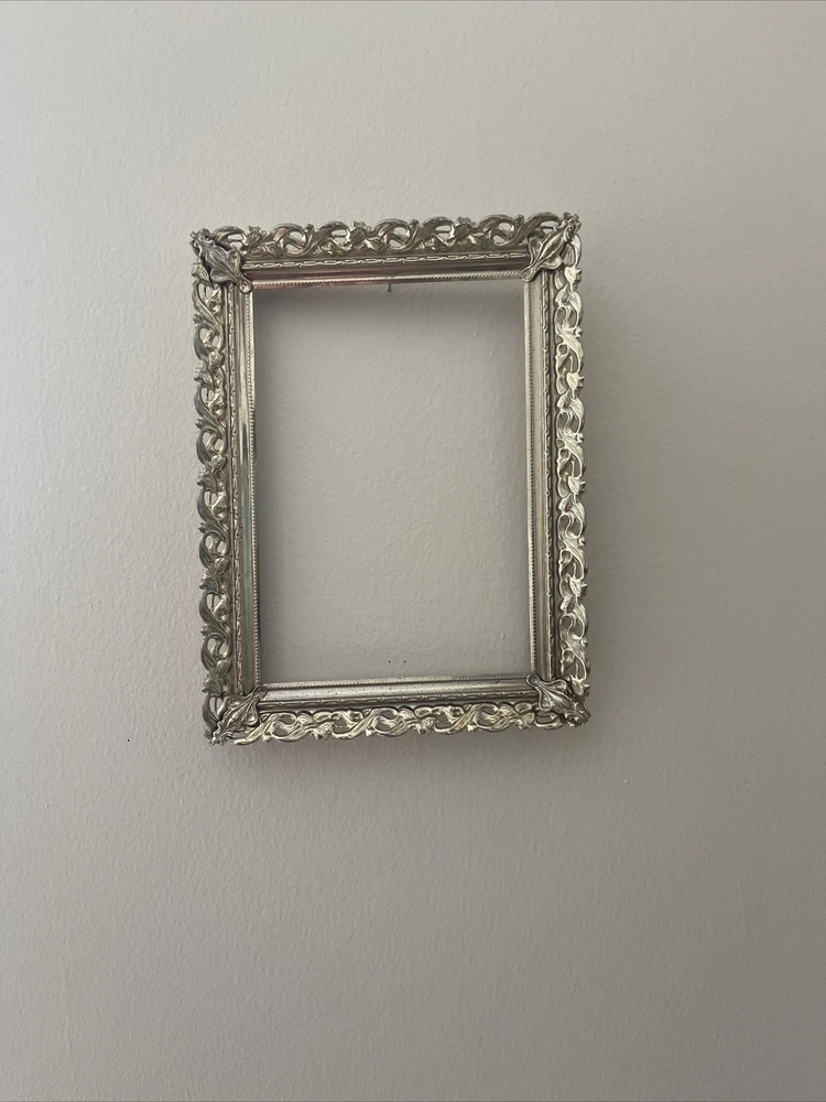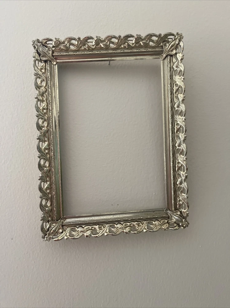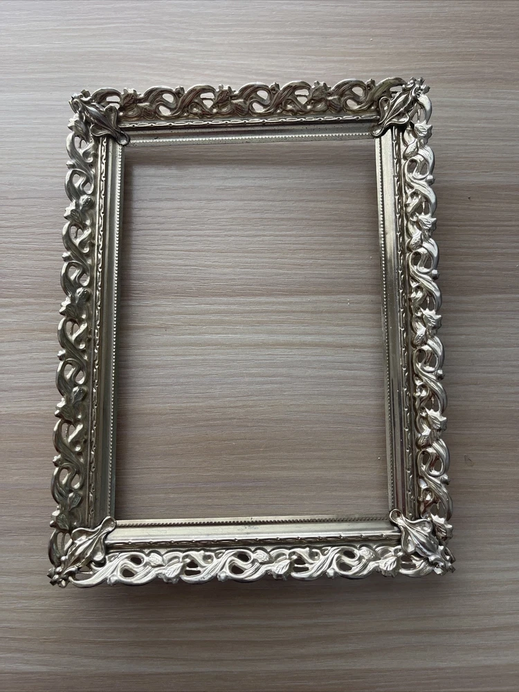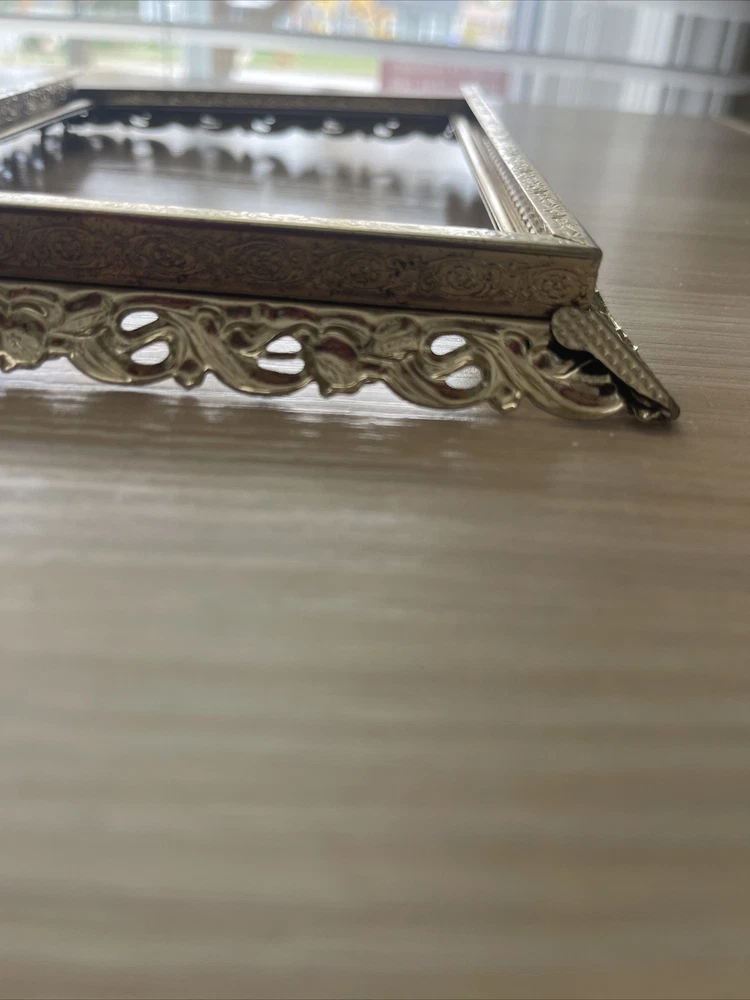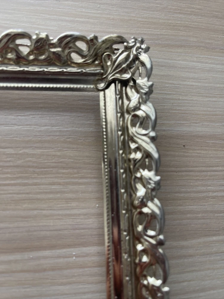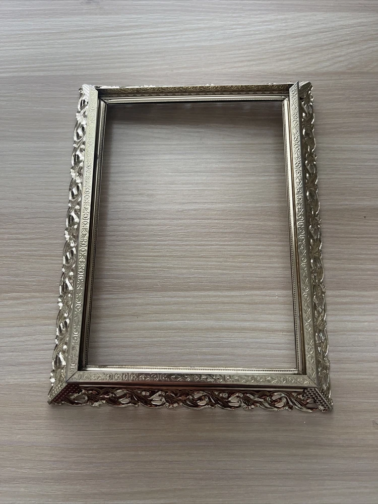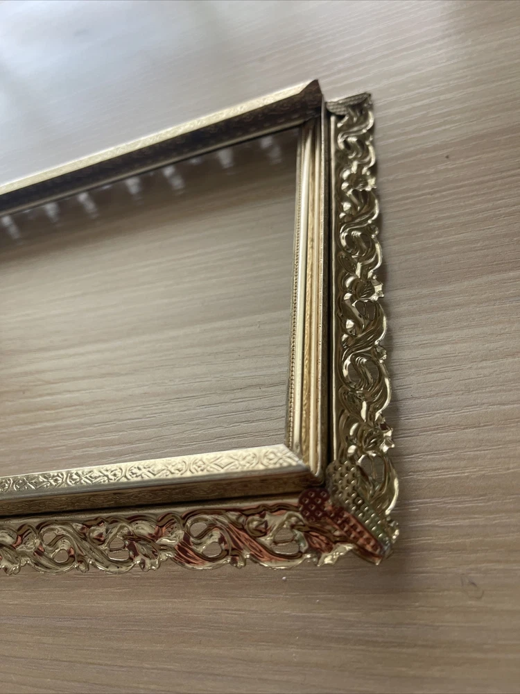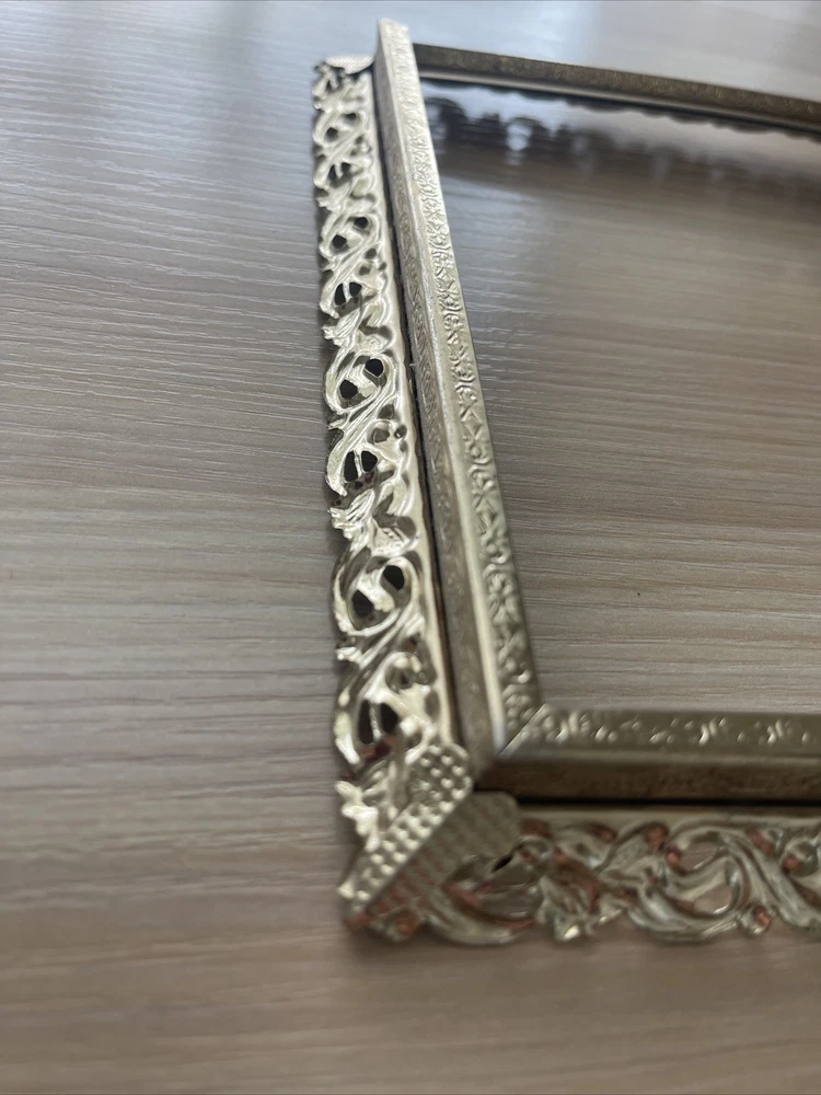 Vintage Regency Gold Tone Metal Filigree Picture Frame Holds 5"x7" Photo Ornate Please see photos. Does not lay flat.