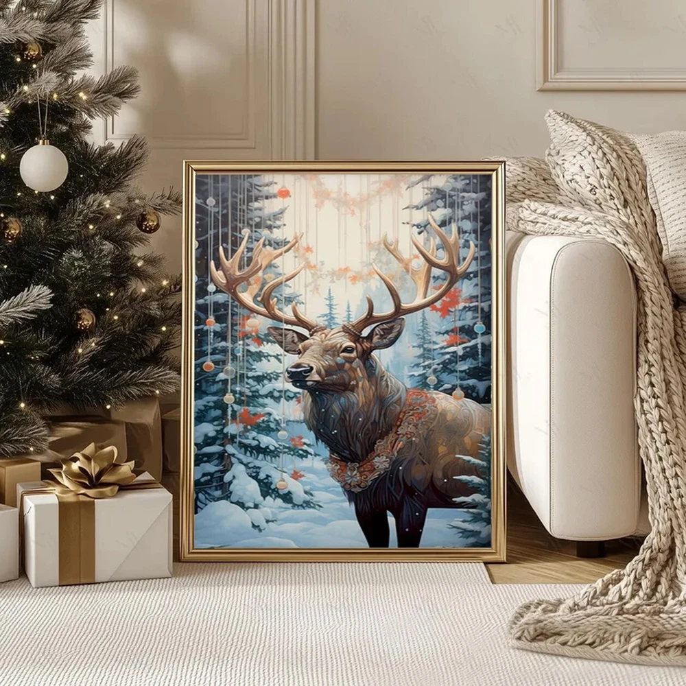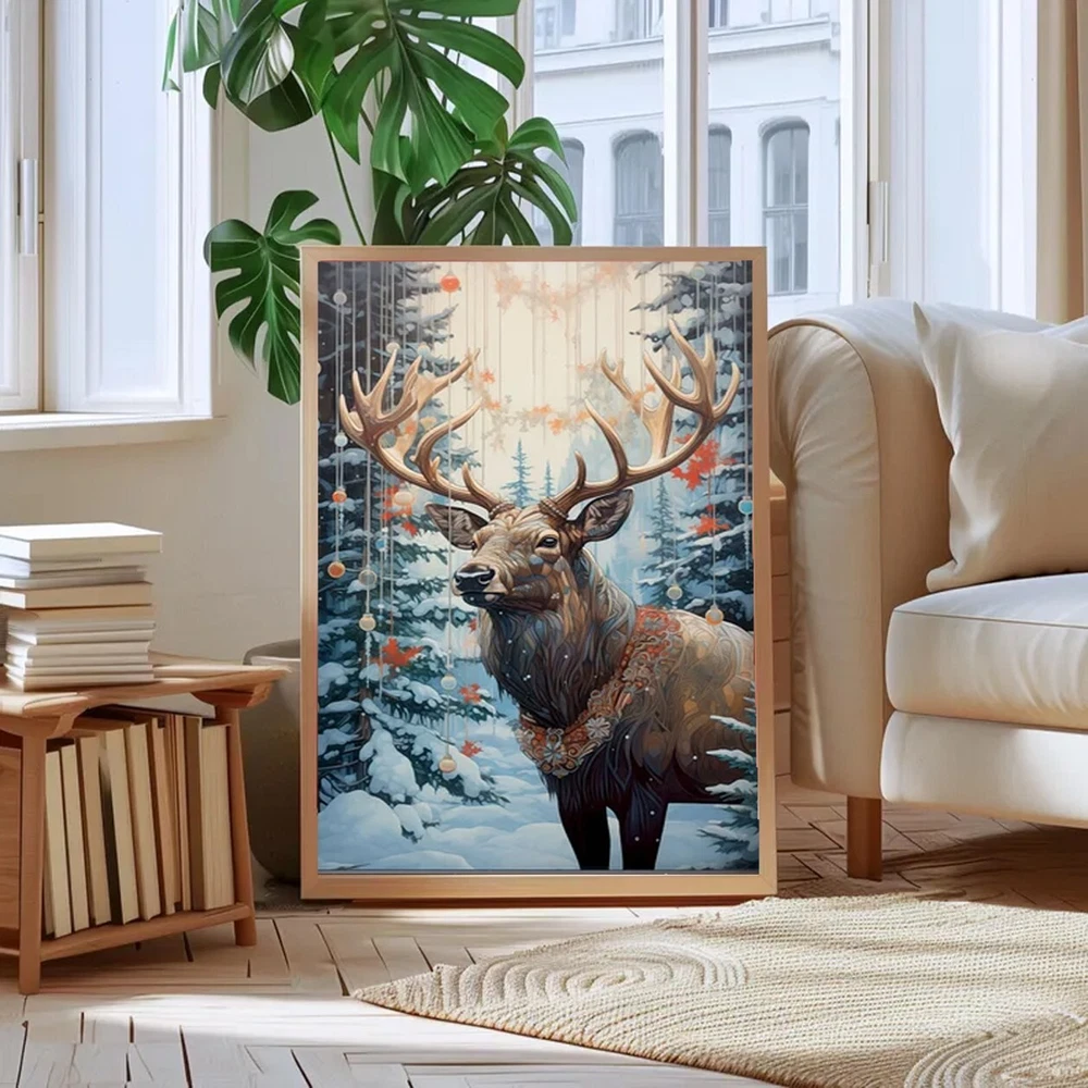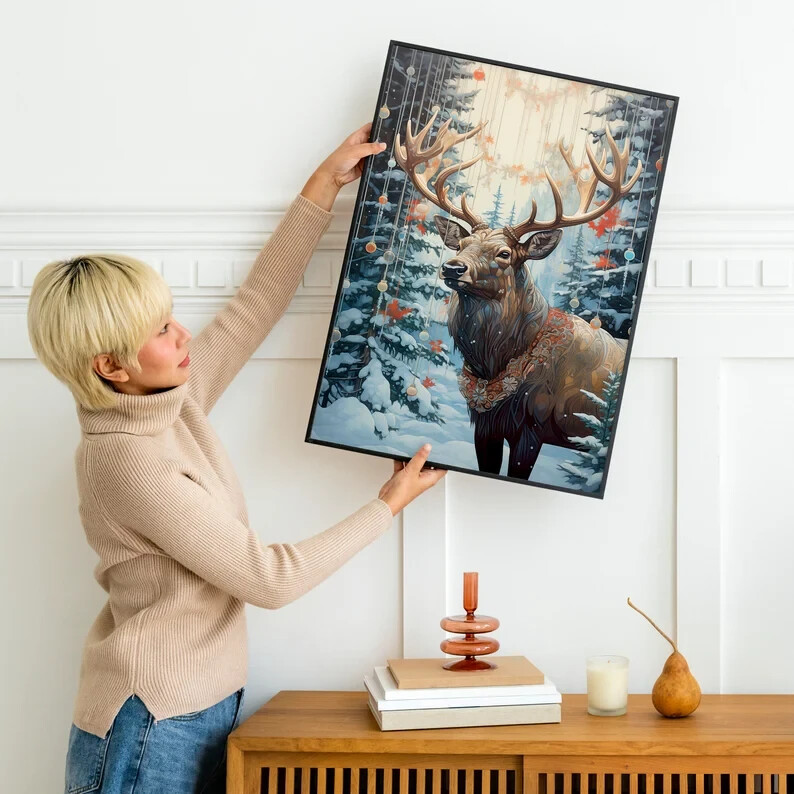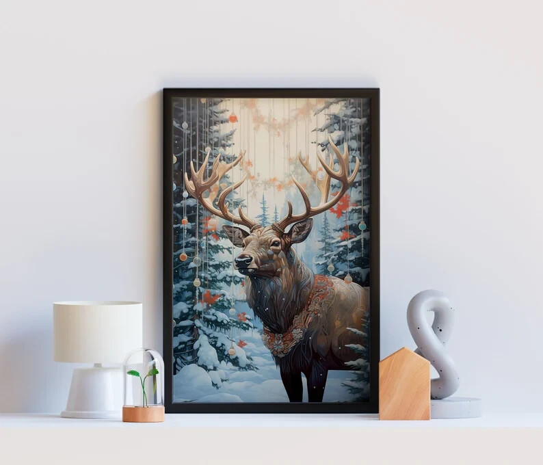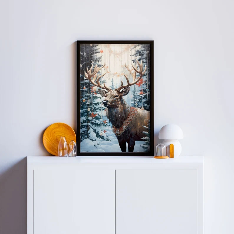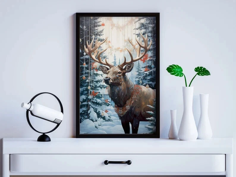Vintage Reindeer Christmas Wall Art Holiday Decor Poster Unframed