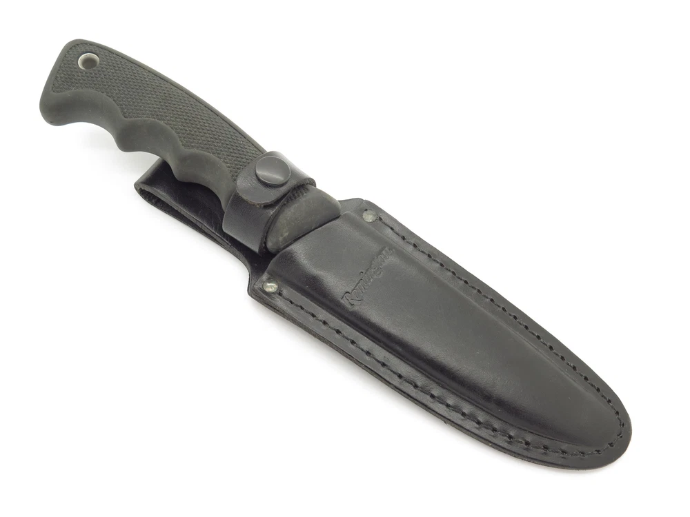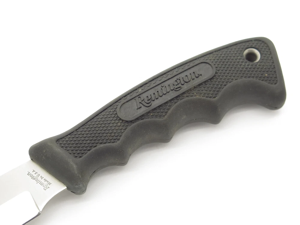 ePrague Contact Visit Store New Items Remington Huter This is a Remington classic USA made hunting knife. It features a black rubber handle with stainless blade and comes with the sheath. Product Highlights Model: Remington Huter Condition: Lightly used, original factory edge, needs sharpened. Original sheath Made in United States Folder Closed, or Fixed Overall Length: 9.7" Blade: 4.5" long, Stainless Steel Handle: Black Rubber Comes with sheath in box About Us A member of eBay since the year 2000, ePrague Knives has helped customers find the perfect everyday-carry knife as well as the “safe queen” collectible. Based in Post Falls, Idaho, we offer new and used knives and we specialize in obtaining rare cutlery direct from Seki, Japan. Online retail requires a company that is able to bring the showroom experience to the web - we do this with superior photography, detailed descriptions, great customer service, and speedy safely packaged shipments. Newsletter Click "❤ Save This Seller" on the main product page then go to "Saved Sellers" and check the box to subscribe to newsletter. Desktop users please click the "Sign up for Newsletter" link above. Terms Laws change and vary according to location. By purchasing, you verify that you are legally able to purchase the Product and you verify that you are over the age of 18 years and are aware of and in compliance with all local, state, and federal laws. You shall be responsible to check all applicable federal, state, and local laws concerning the purchase, ownership, use, and possession of any Products sold to you by ePrague, LLC. By purchasing Product, you verify that you are of legal age (no minors), and will use the Product legally and assume all responsibility. By ordering and purchasing Product from ePrague, LLC, you agree that the Product can legally be purchased and owned by you in accordance with all federal, state, county and local laws. ePrague, LLC and its employees shall be held blameless and will not be held liable for any infraction of laws by the purchaser. ePrague, LLC will not be held liable for any injuries from any item purchased from ePrague, LLC. Contact Can't find what you are looking for? Please contact us and we will be happy to help.