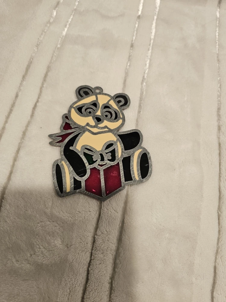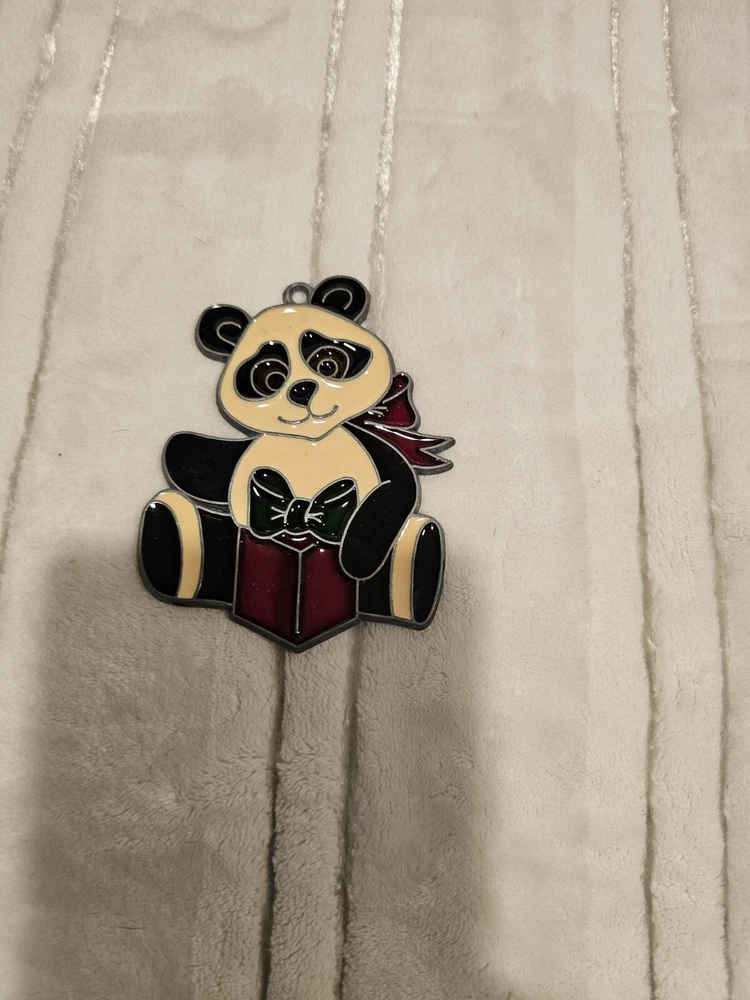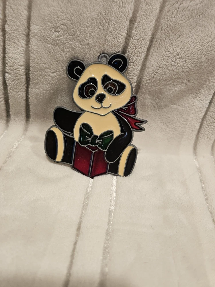 Vintage Resin Christmas ornament Stained Glass Style Panda Bear Metal Frame