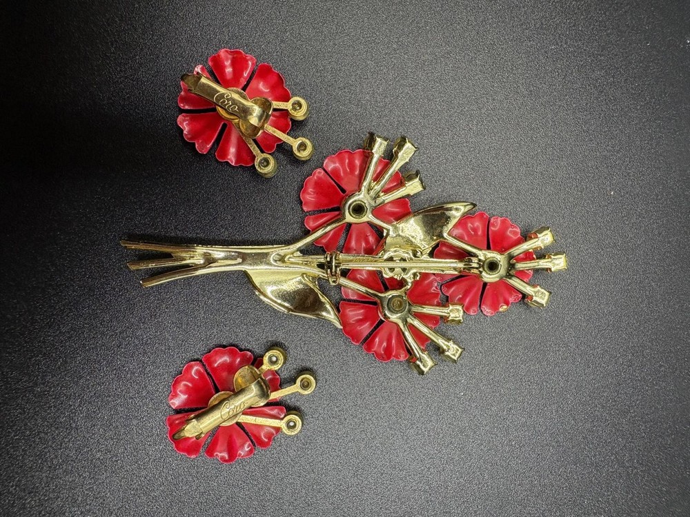 ~ Stunning set, Great condition ~ Signed Coro ~ Rhinestone and pearl accents ~ Earrings are Clip on This item is vintage or antique and is not new unless otherwise stated. Normal age-related wear may be present, including light surface wear, scratches, tarnish, patina, oxidation, or minor imperfections consistent with age and prior use. Patina and wear are part of the character of vintage jewelry and are not considered defects. Please review all photos carefully, as they are part of the description and best represent the item’s condition and details. Additional photos or information are available upon request prior to purchase. Please feel free to message me with any