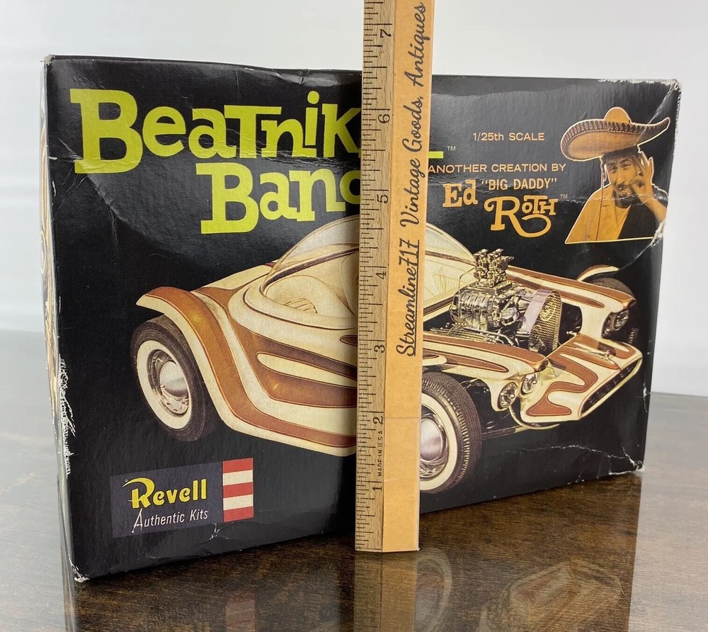 This Revell model kit is a must-have for any fan of Ed "Big Daddy" Roth and his iconic Beatnik Bandit custom show car. With its vintage design and unique features, this model is perfect for collectors or hobbyists who appreciate the art of model building. From the show car's sleek curves to its intricate details, this kit captures the essence of Roth's work. Add this piece to your collection today and bring a classic piece of automotive history to life. Most of our items are second hand and have some shelf wear on them. We do not guarantee mint condition unless otherwise noted. Please take time to look closely at all photos of items and specifics, as they are all part of the complete description. Most noticeable flaws we see will be pointed out with a pen. All items in the photos are of the actual product being shipped directly to you (minus display props and measuring devices) If an item is not in the photos, please do not expect it. If you have any questions or concerns, please reach out to us. Our feedback speaks for itself. We do all we can to keep you satisfied with your buying experience from Streamline717 If you enjoyed this item, please check out our ever growing inventory for more of “The Good Stuff”