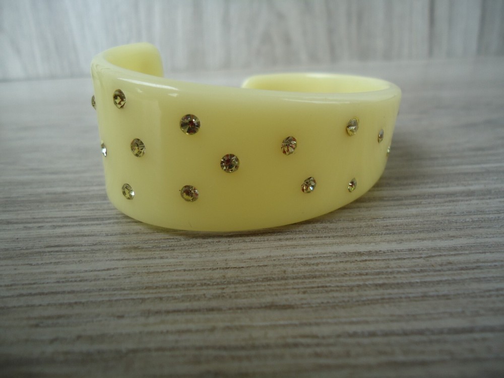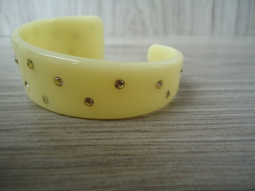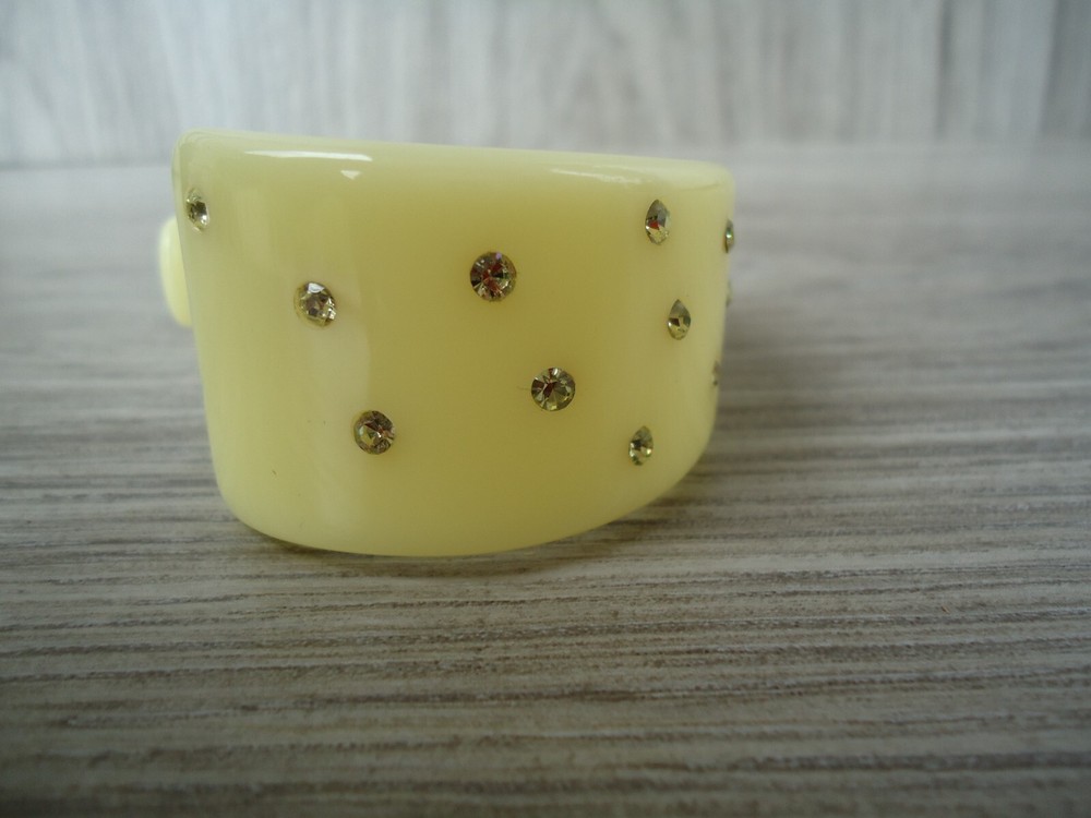 VTG Rhinestone Studded Asymmetrical Cuff Bangle Bracelet Pale Yellow Cream