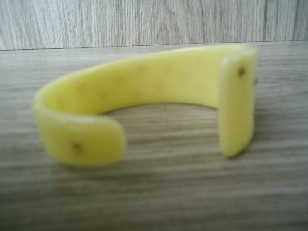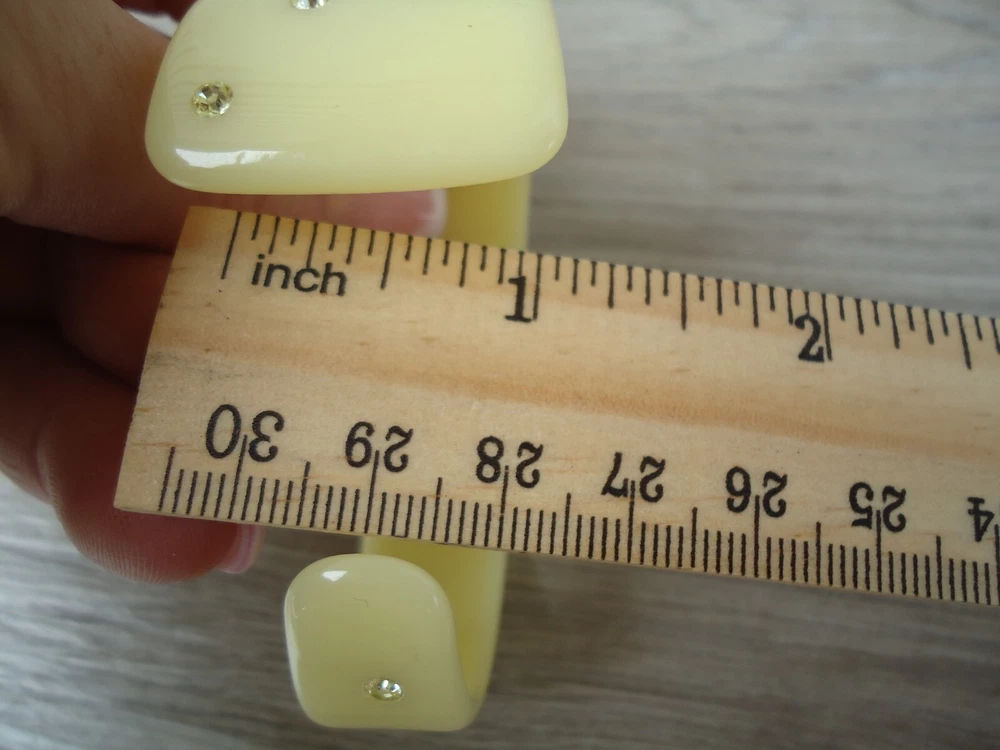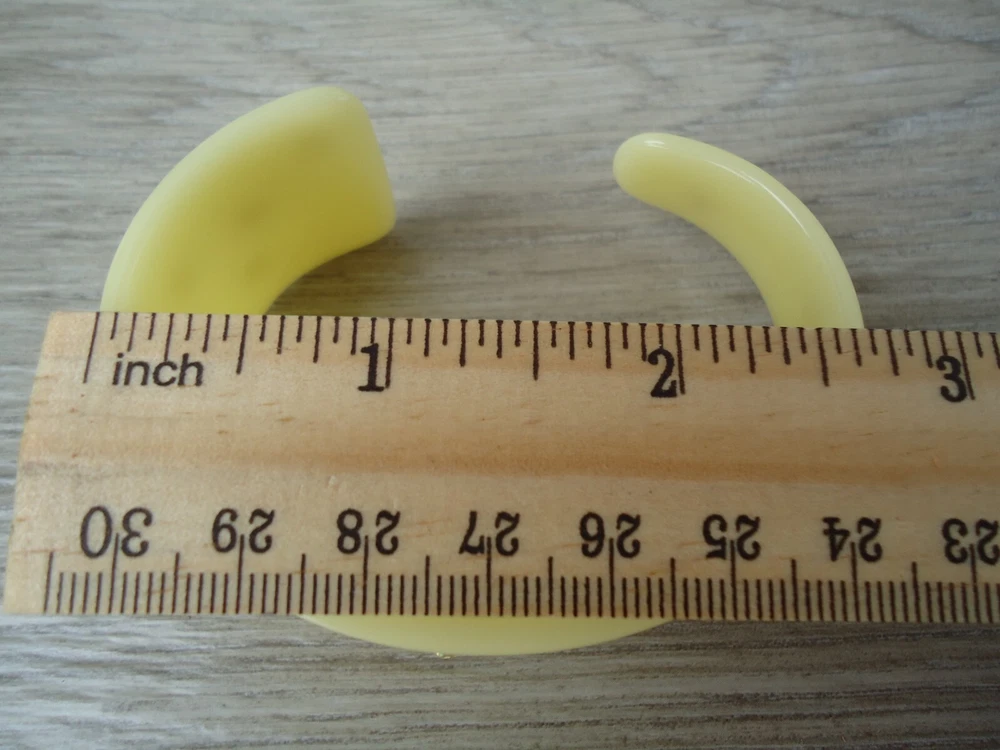 Style: Asymmetrical Cuff Bangle Seller Notes: “Preowned used condition.” Brand: Unbranded Theme: Angels, Art, Beach, Bohemian, Fairytale & Fantasy, Fashion & Costumes, Hip Hop, Punk, Retro Occasion: Any Occasion Main Stone Color: NA Base Metal: Plastic Country/Region of Manufacture: Unknown Color: Pale Yellow Cream Metal: plastic Type: Bracelet Jewelry Department: Fashion