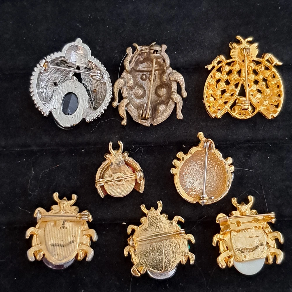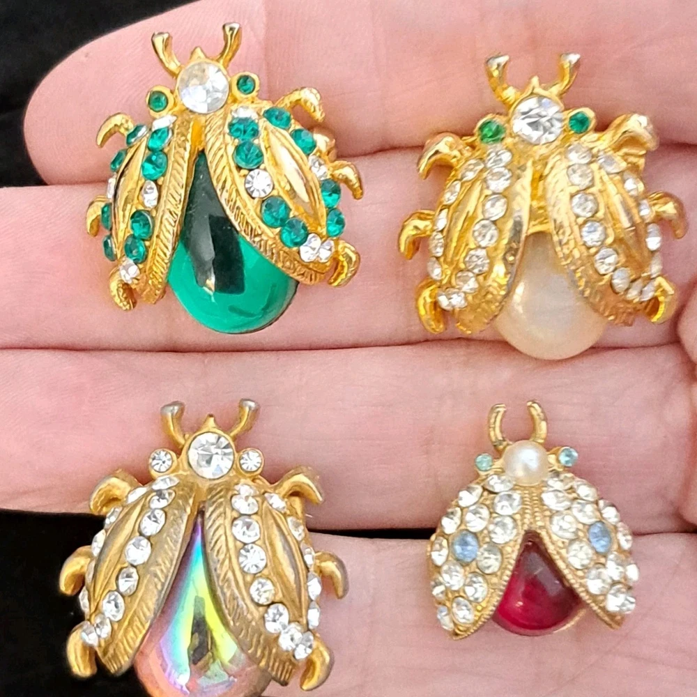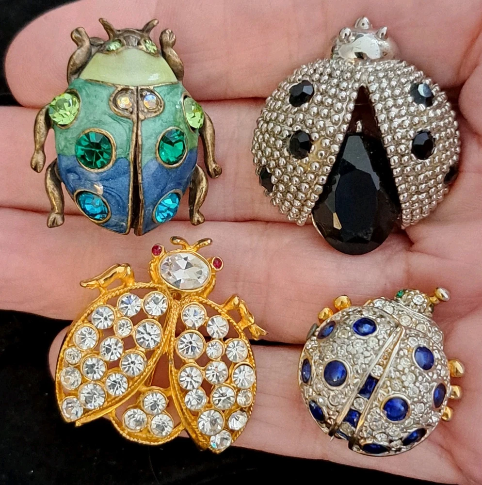 1. Absolutely love these vintage ladybug brooches! The sparkly rhinestones catch the light beautifully, and the set of eight gives so much variety—perfect for adding charm to jackets, scarves, or handbags. Each piece is in flawless condition, with vibrant colors and sturdy pins. The mix of sizes makes them versatile for different styles. A must-have for any vintage jewelry lover—adorable, unique, and full of retro charm!