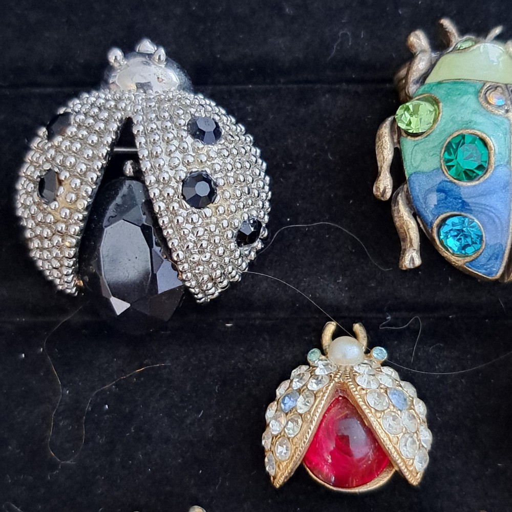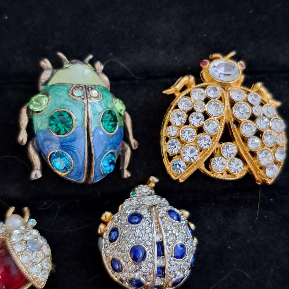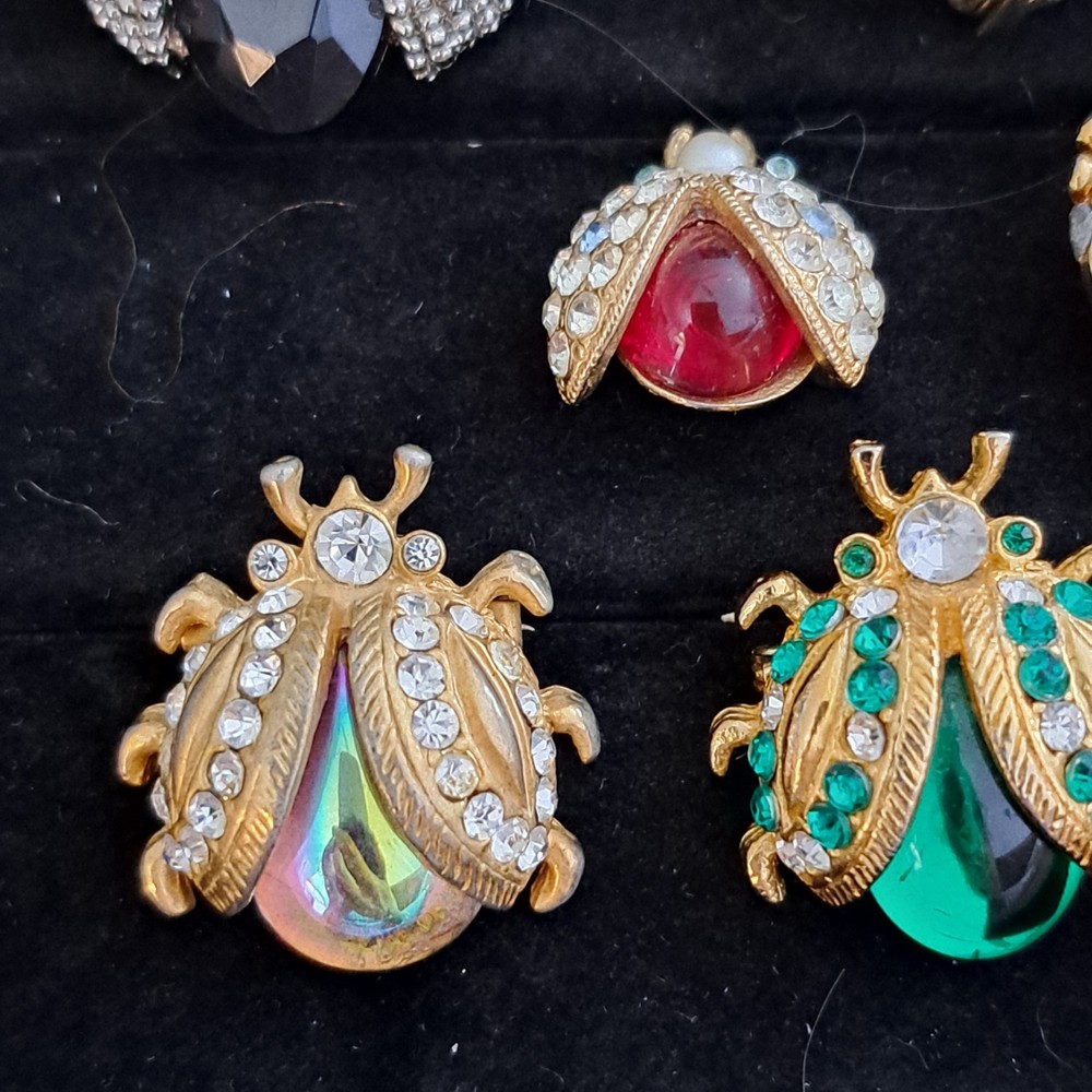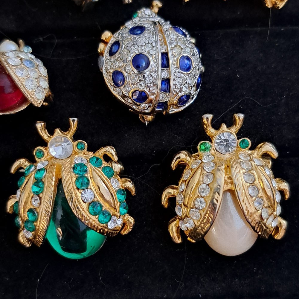 Vintage Rhinestone Ladybug Brooch Lot of 8 Jelly Belly Stunning Excellent Condition