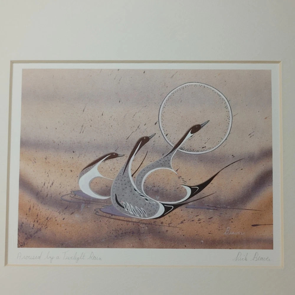 Vintage Rick Beaver Fine Art Prints Signed Indigenous Artist Canada 8x6" Excellent condition These vintage fine art prints are a beautiful watercolor painting by renowned Indigenous artist Rick Beaver. Created in 1981, the painting features stunning variations of birds in a style that reflects the Ojibway Indigenous culture. Measuring 8 inches in height and 6 inches in width, this small but powerful piece is perfect for any collector of contemporary Indigenous art. The print comes matted and signed by the artist himself, making it a unique and valuable addition to any art collection. With its beautiful subject matter, exquisite production technique, and deep cultural significance, this piece is a true gem. Don't miss out on the opportunity to own a piece of Canadian Indigenous art history. Size: 8x6" appx and with white matte it is 12 x 10" Note: All are portrait orientation except for Twilight Rain which is landscape orientation Ships FAST from Canada with tracking We take extra care in packaging to ensure safe arrival of your item. Please follow our Store so that you see new items weekly. CDN to USA Current exchange occurs at time of payment We ship UPS, Canada Post and Fedex as postage requires. Thank you for being a valued customer!