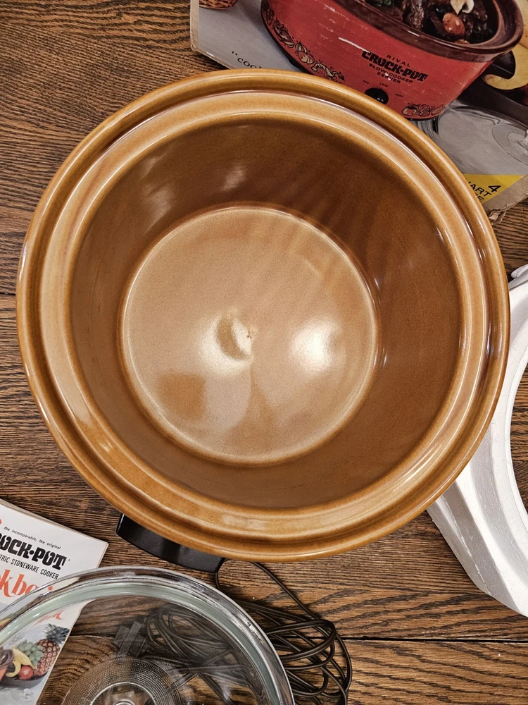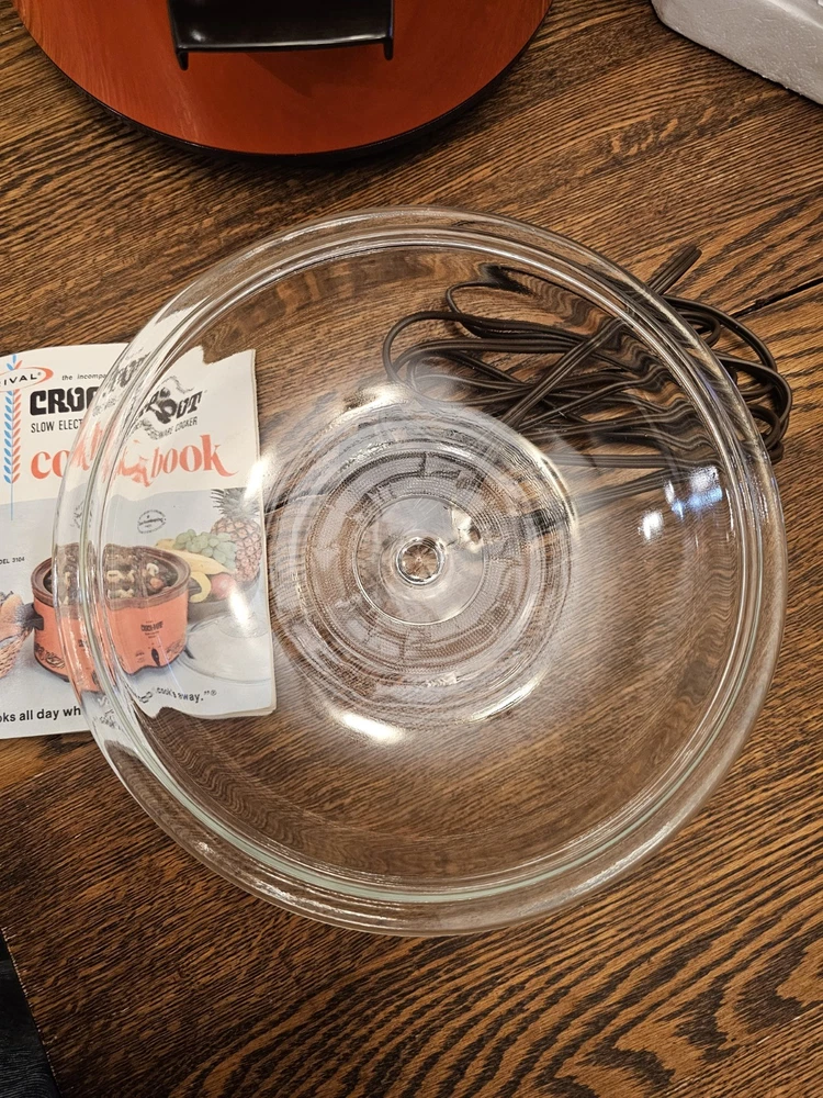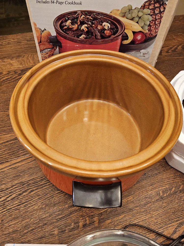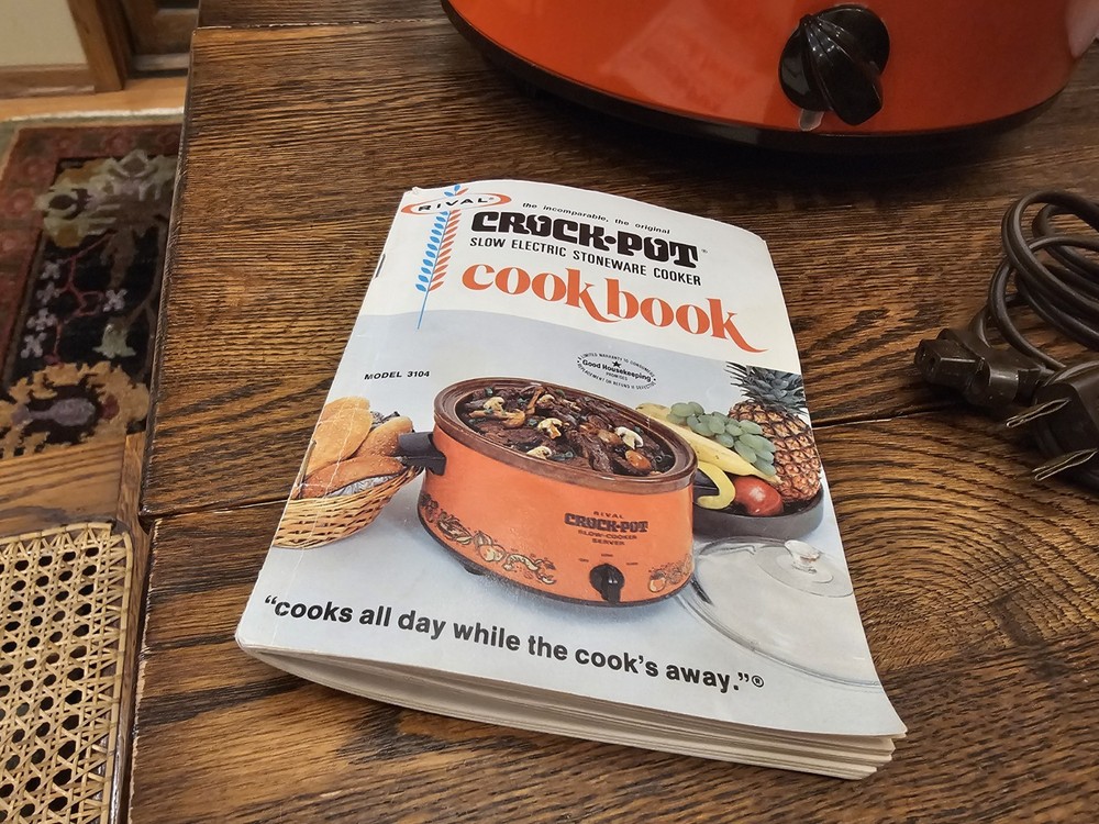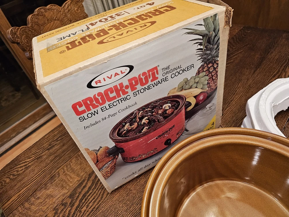 A great unused Rival 3104 FLAME 4 QUART CROCK-POT. ORIGINAL BOX AND THE RECIPE BOOKLET. A GREAT ORANGE COLOR. TESTED AND WORKS GREAT. Shipping to the lower 48 states and no P.O. boxes.