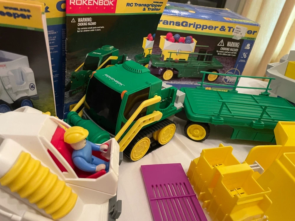 Description: Huge Lot Vintage Rokenbok Radio Control Building System: Vehicles and Building sets. Three Vehicles, Two Controllers, One Deck, Posters and Building sets. This was originally purchased from a high-end educational toy store and is categorized a STEM Educational Toy. Really a lot of fun. We purchased it for one of our children, so, believe me, I know they were quite the commitment, and hold their value. The entire group has always been well cared for in proper containers. Condition: Used, Very Good Condition. Zoom-in on all photos. I took pictures from several angles, so in that case it may appear there are two of certain pictures. I checked the vehicle and controller-functions; they were working, however, the set is vintage, so I cannot guarantee all mechanical parts. Zoom-in on all photos, however, some of the pictures are from a square cut out of the original boxes for each set, or advertising paperwork and directions. In this case there could be other items pictured that are not included. Also, there are several really cool unused posters that would be great to decorate a child's room. In this case I opened the unused posters for you to few, however, I cannot guarantee all items pictured in the posters are present in the listing. If you zoom-in on photos you should be able to see individual items included in the sets. I cannot guarantee that each small part is included because I do not know the original inventory of each set; it is a huge lot. -Buyer Pays Shipping -I SHIP FAST -Weight: It will be heavy. Packing will increase overall weight, and BUYER LOCATION determines final shipping costs. Similar sales for similar Rokenbok lots shipped for $100.00 plus. -Please message questions or concerns. Working to earn your Positive Feedback with Value, Variety and Service. -Thank you for your consideration. -Have a great day.