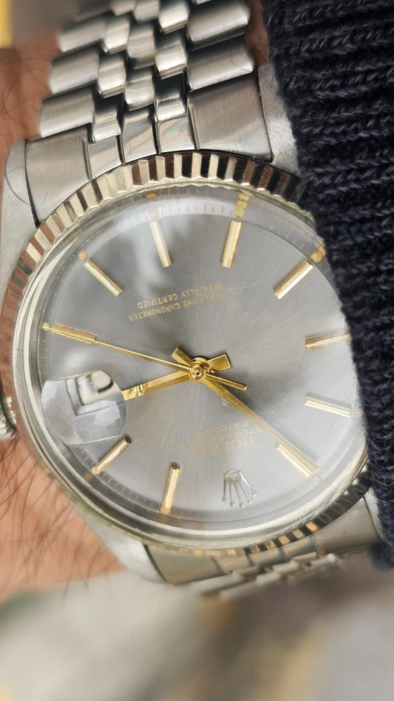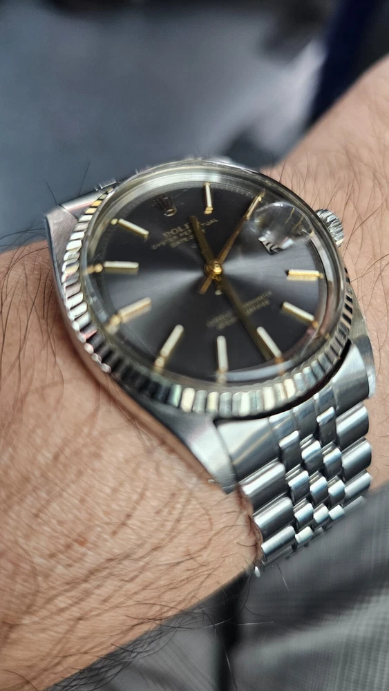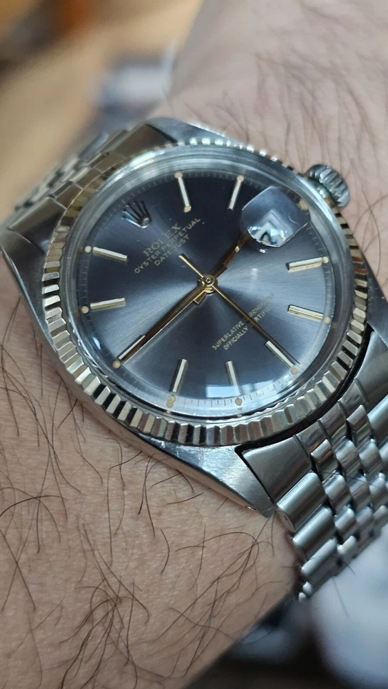 Elevate your ensemble with the timeless elegance of a vintage Rolex Datejust, model 1601, featuring a classic pie-pan gray sunburst dial complemented by baton indexes and a fluted white bezel. Crafted with a robust 36mm stainless steel case and Jubilee band, this Swiss-made wristwatch embodies the perfect fusion of form and function for the discerning gentleman. With its intrinsic 26 jewels, the watch operates on a reliable mechanical (automatic) movement and boasts notable features such as a date indicator and chronometer precision. A testament to its heritage, this 1973 timepiece retains the sophistication of its era, making it a stunning addition to any collection or a standout accessory for formal occasions. I am so excited to be able to offer you a gorgeous vintage Rolex Oyster Perpetual Datejust Ref.1601 men's automatic watch. Rare gray dial never retouched The stainless steel Oyster case, screw down caseback, white gold fluted bezel and crystal are all in good condition for its age. The dial is fitted with gold hands and a date window at 3 o'clock position which is a great asset to this vintage. The robust 36mm stainless steel Oyster case with a screw down Rolex crown and Rolex Jubilee bracelet have remained in good condition with general wear but no significant damage. In fully working order- runs strong and tells good time, powered by a reliable Rolex 1570 movement with 26 jewels. Reference and serial numbers are both sharp and strong. Serial number 347**** says it dates to 1973. The original Rolex Jubilee bracelet will fit up to 7.2 inches wrist. The crystal has been replaced with the new one just before listing this Beauty. You will get exactly what you see. The pictures say it all. Please check all my pictures for more details as they are the best description of the watch much better than I could. I will ship the watch to your door using FedEx International Priority. Expected to arrive in 3~5 days of shipping. No box or papers are included. I do accept PayPal, Sir..... Please note, the buyers are responsible for import and duty fees. I am so grateful you have visited my E-house. Thanks for your attention !!