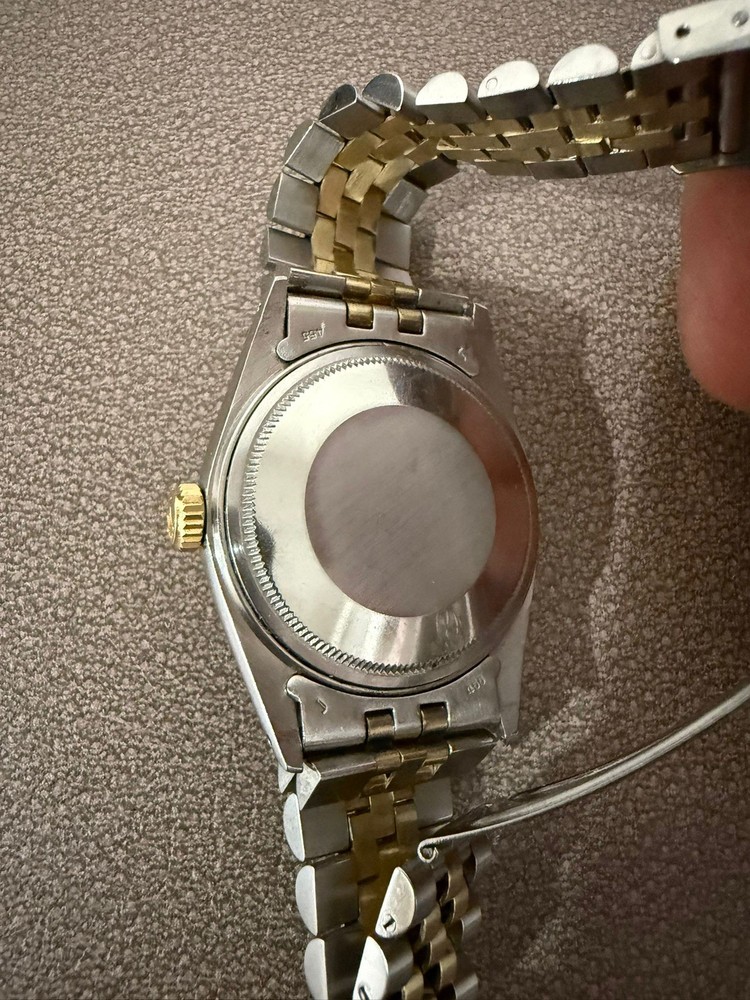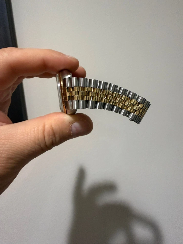 The Vintage Rolex 16013 Buckley Gold Dial Men's Automatic Watch from 1980 is a classic timepiece with a timeless design. Featuring a gold dial, Roman numerals, and a fluted bezel, this elegant watch exudes luxury and sophistication. The 27 jewels movement and water resistance of 30m make it a reliable and practical choice for everyday wear. The Rolex Jubilee band, made of 14k gold and stainless steel, adds a touch of glamour to this iconic piece. A perfect choice for collectors and watch enthusiasts looking for a vintage Rolex with a golden hue.