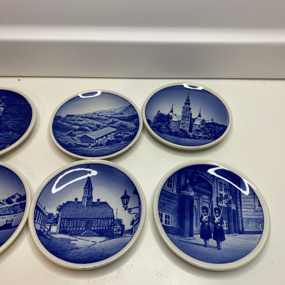 Vintage Royal Copenhagen Denmark Blue Mini Collector Plates Set of 6 Wall Decor