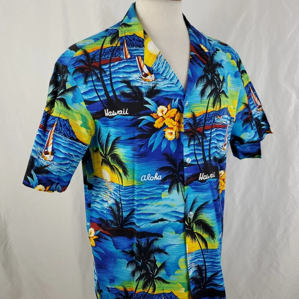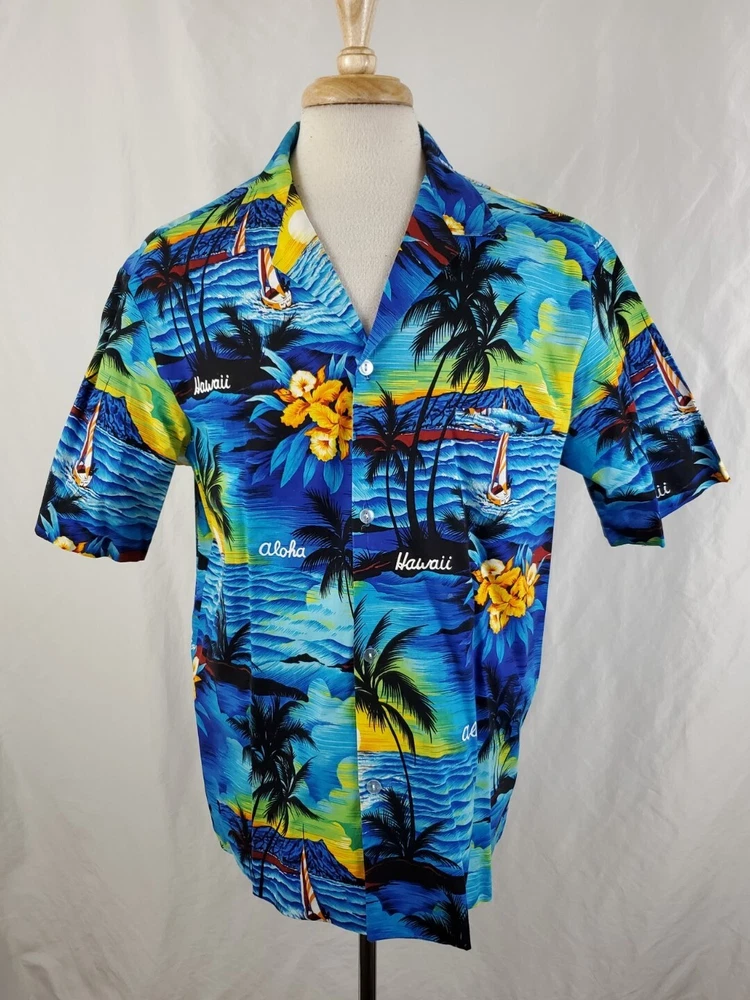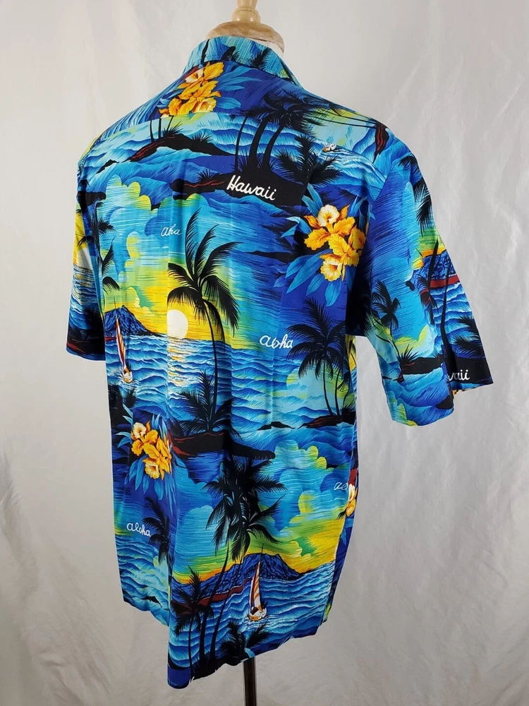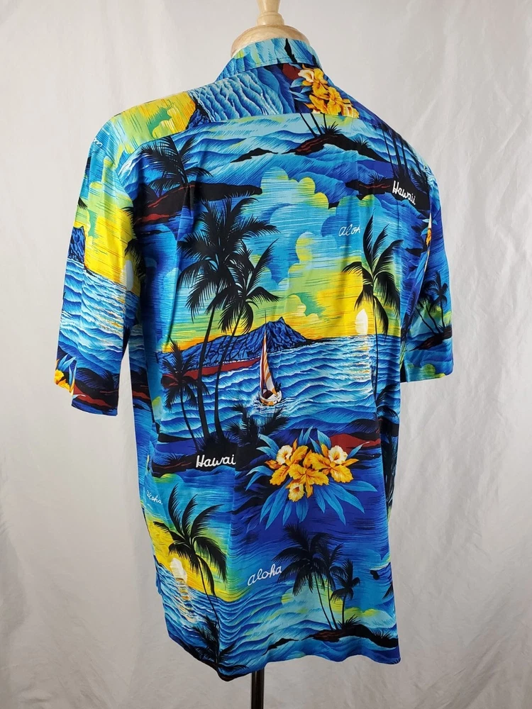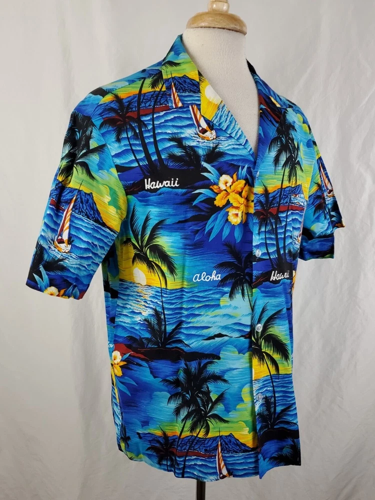 Pre-owned condition Very nice, light wear No stains or snags 100% Cotton Made in Hawaii Measurements Chest across 23" Length 29.75"