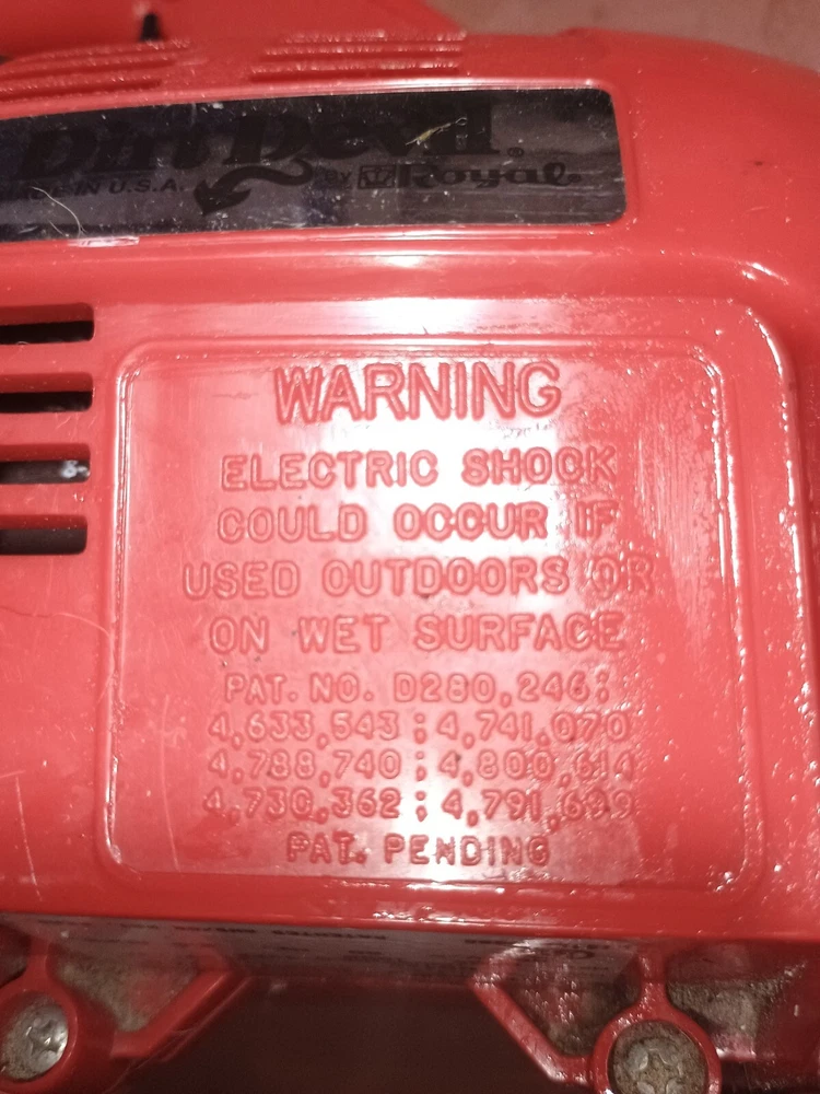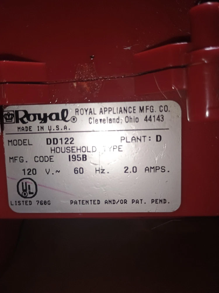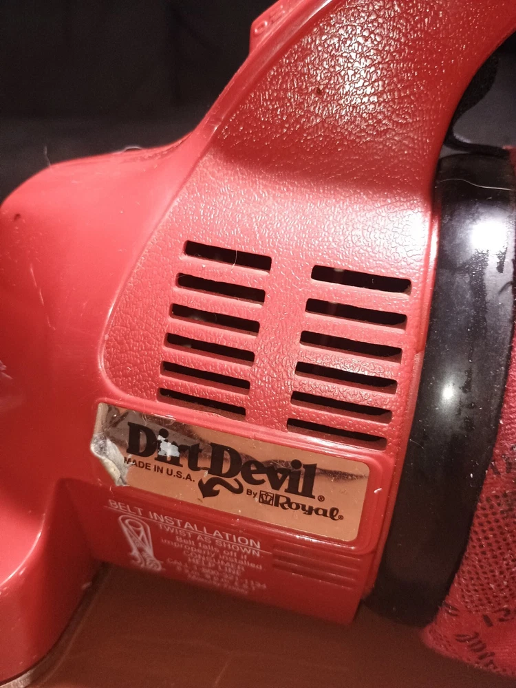 Brand: Dirt Devil Features: Blower, Carpet Cleaning, Compact, Edge Cleaning, Ergonomic Handle, Handle Controls, Multi Surface, Pet Hair Removal, Portable, Rotating Brushes Color: Red Model: 120 Type: Handheld Cord Type: Corded Protection Plan: No Coverage Bagged/Bagless: Bagged