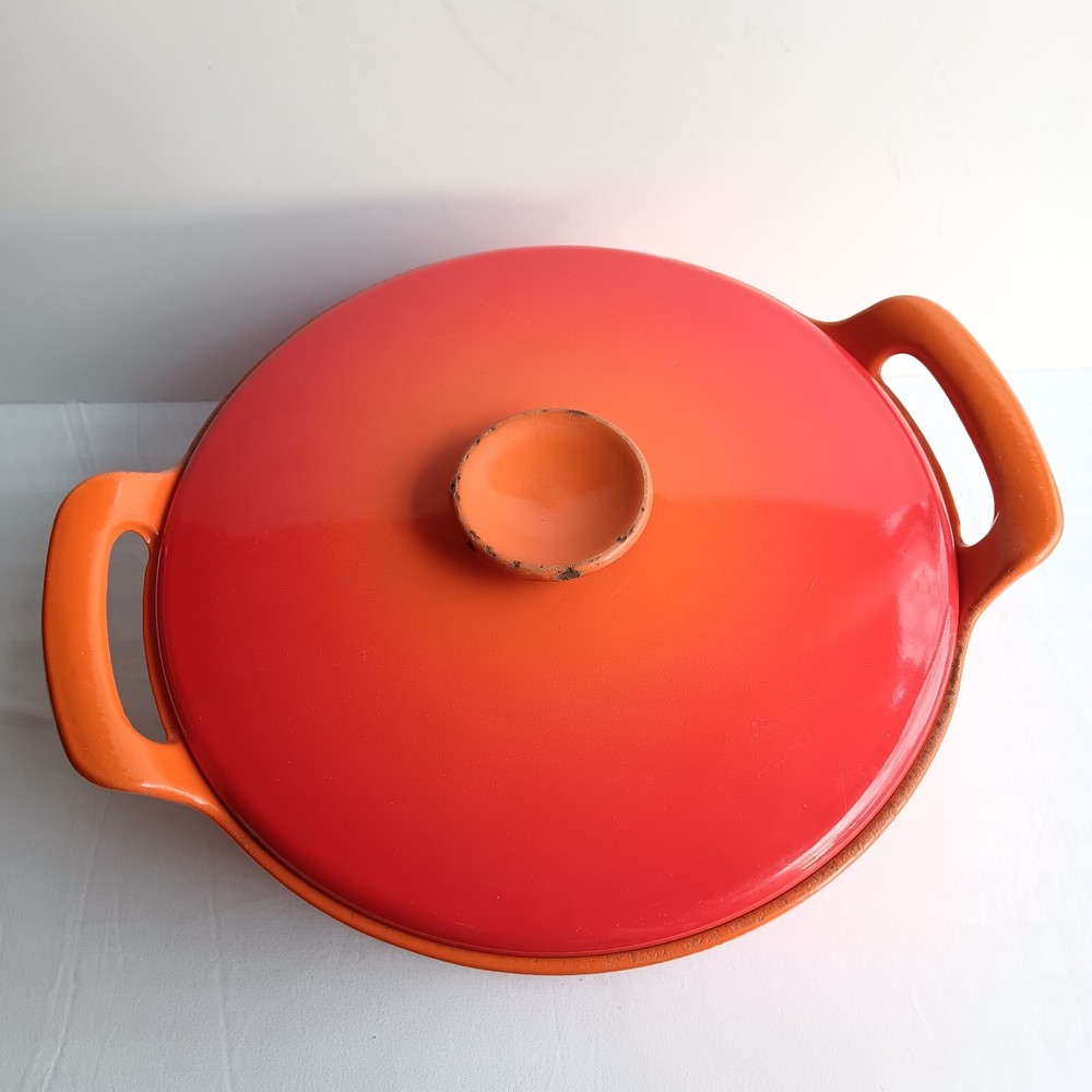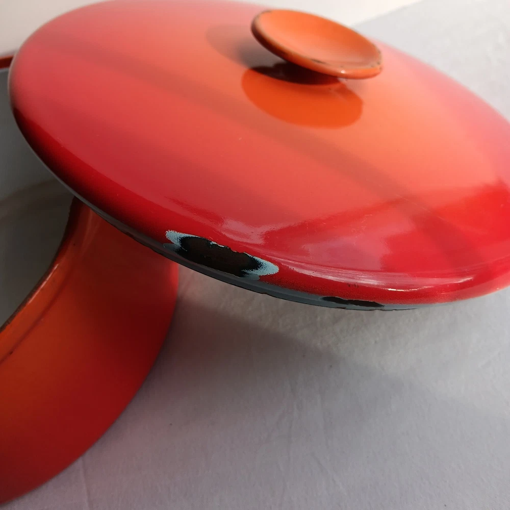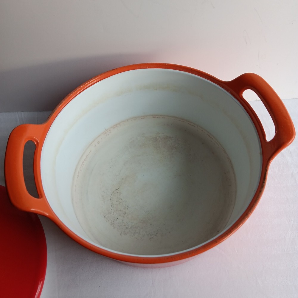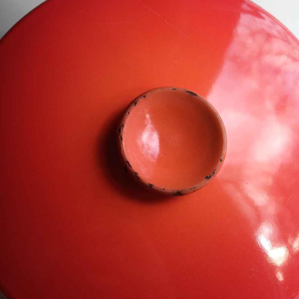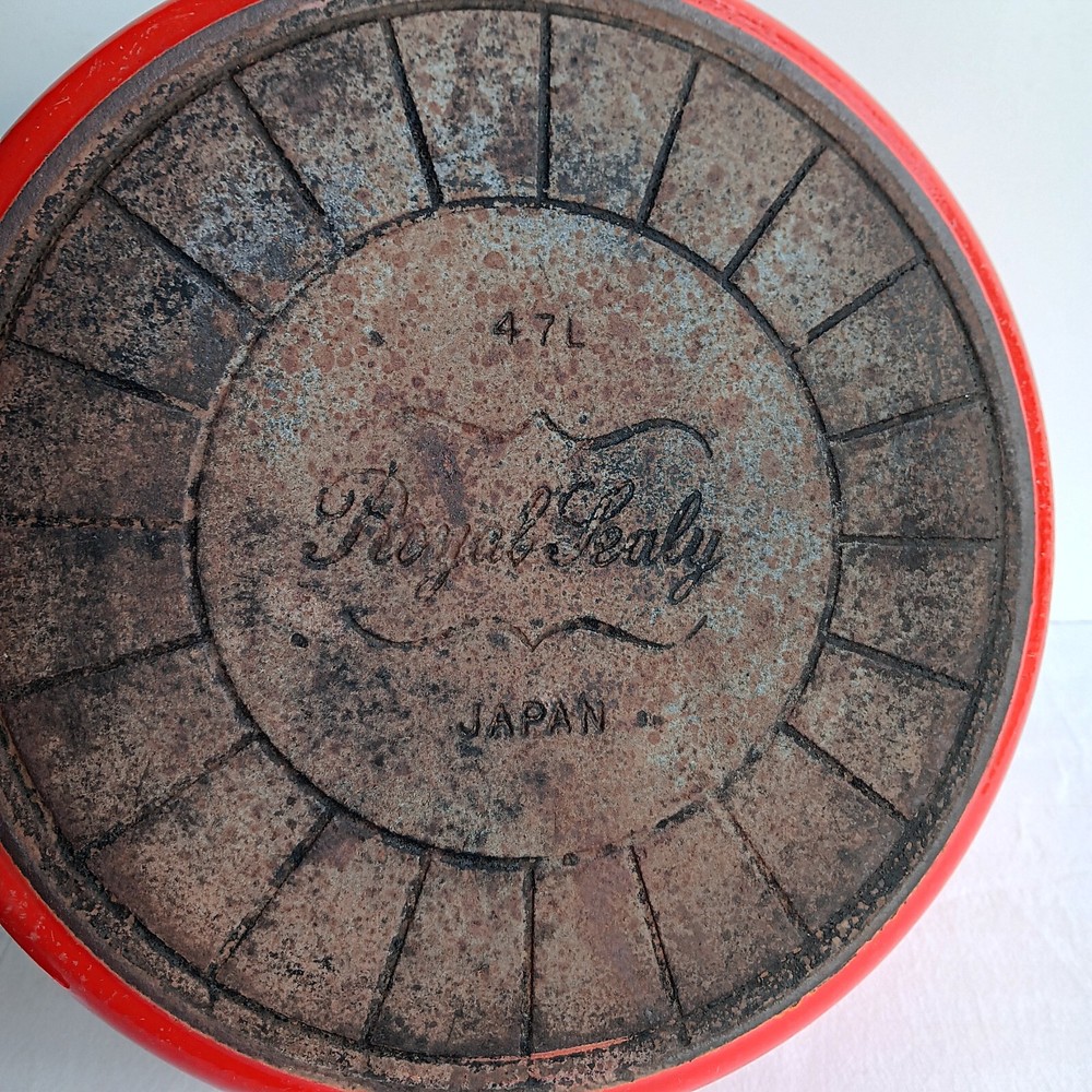 Add a touch of nostalgia to your kitchen with this Vintage Royal Sealy Dutch Oven from Japan. The round orange cast iron pot comes with a matching lid, perfect for slow cooking your favourite meals. With a capacity of 4.7 L, this Dutch oven is both functional and stylish, making it a must-have for any collector of unique cookware.