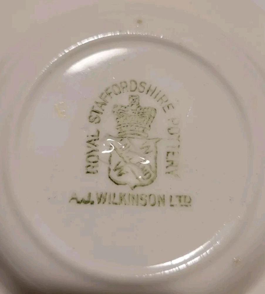 This vintage Royal Staffordshire Pottery ashtray is a unique addition to any collection. It is in very good condition with no chips or cracks. It measures approximately 4.5" across.