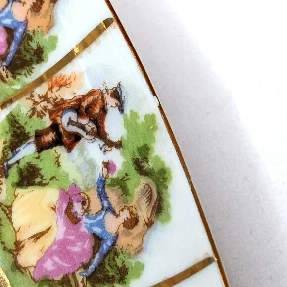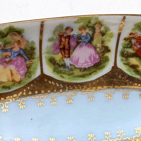 -Vintage Courting Couple Pickle/Relish Dish -Hand painted -Used condition, two chips -10"