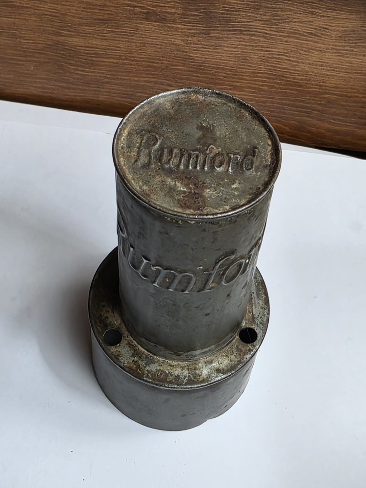 The Vintage RUMFORD BAKING POWDER Tin Metal biscuit cutter is a charming piece of advertising memorabilia from a bygone era. Made of durable tin, this primitive biscuit cutter features a unique design that would make a great addition to any antique or primitive collection. Signed with the brand's name, this item serves as a nostalgic reminder of the history and popularity of RUMFORD BAKING POWDER. Great condition.