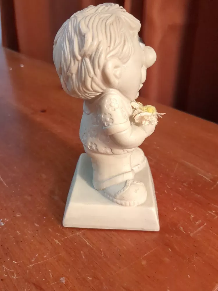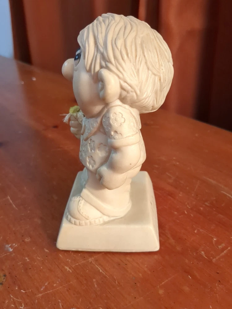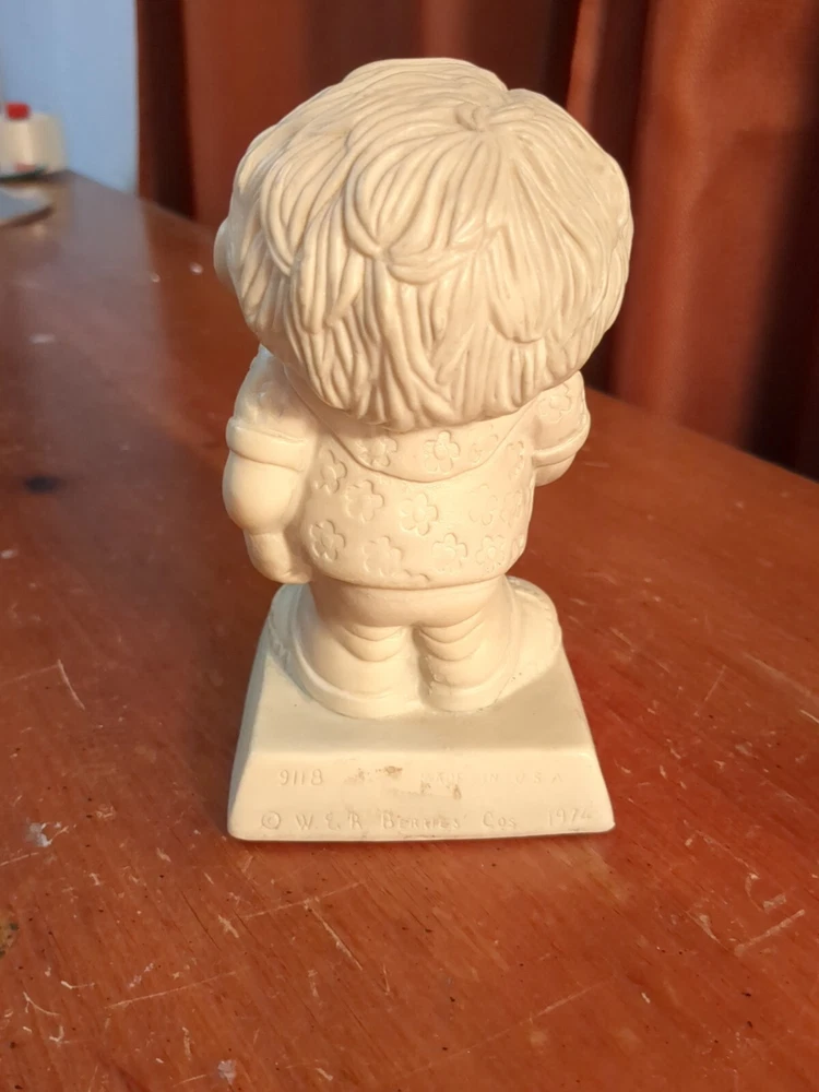 This vintage Russ Berrie figurine is a charming addition to any collection. Crafted from resin, it measures 6 inches in length and is from the 1970s. The figurine is an original piece and features a medium size with a subject of love. Perfect for collectors of decorative items, this figurine is a must-have for those who appreciate vintage pieces.