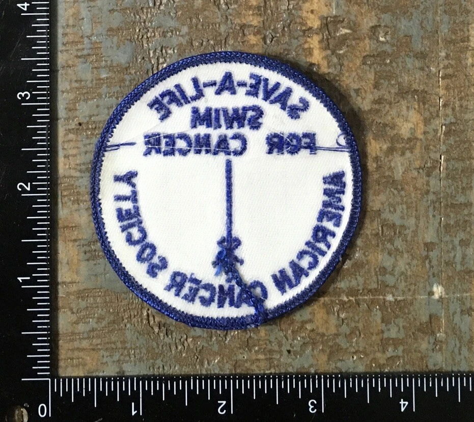 Vintage SAVE-A-LIFE Swim For Cancer American Cancer Society Iron-On Patch Blue