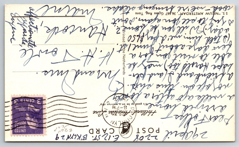 Vintage SS Nieuw Amsterdam Holland America Ocean Liner Cruise Ship Postcard Z12