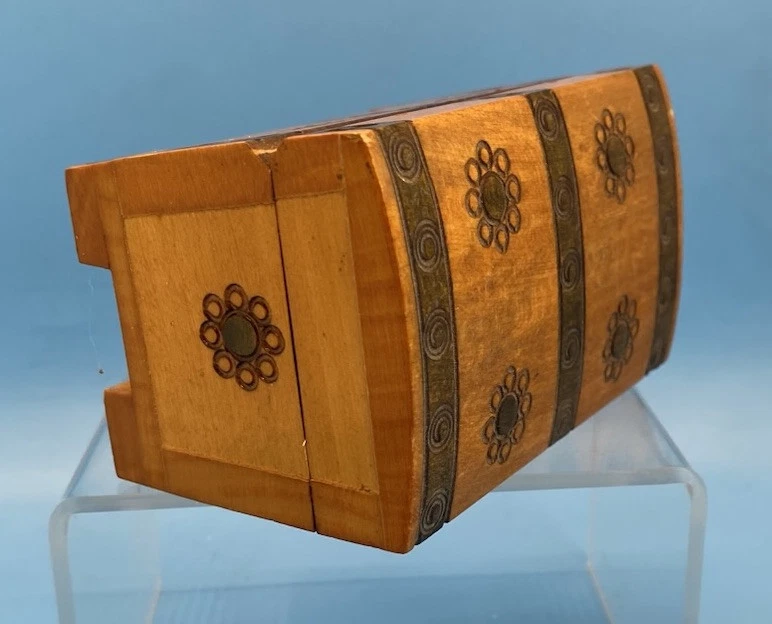$ 2.11Vtg Marquetry Hexagon Box Jewelry Chest Wooden Inlaid Trinket Geometric