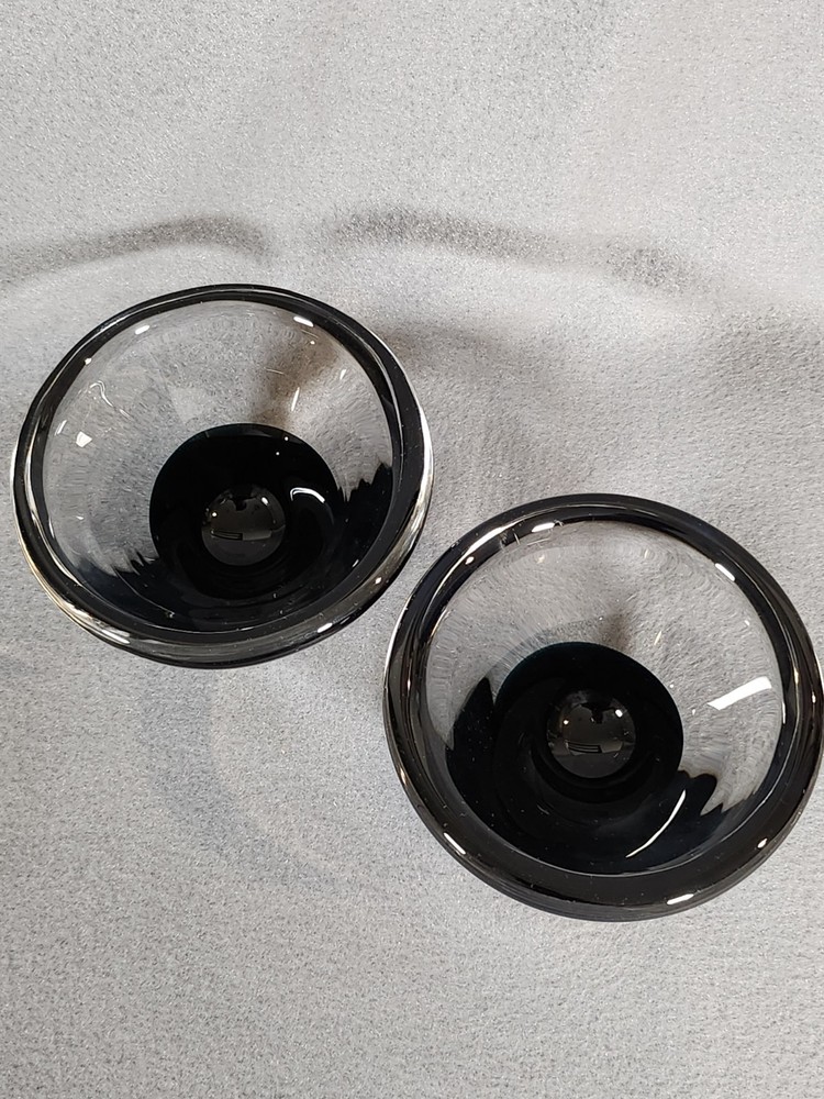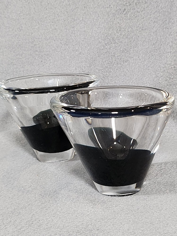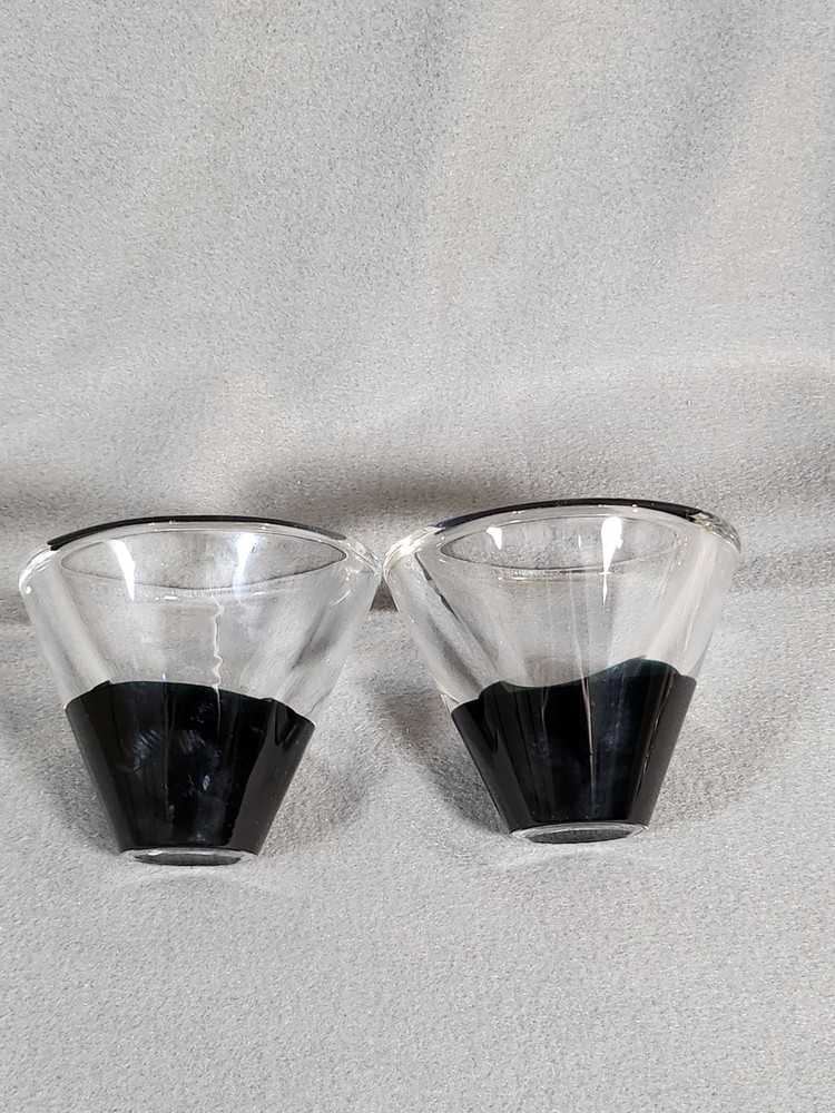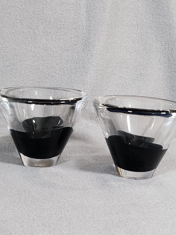 Bring a touch of elegance to your table or home with this exquisite pair of Salviati votive candle holders. Made from high quality glass and featuring an abstract black base, this pair is one of a kind and an absolute statement piece. No chips or cracks on these beauties. Excellent pre-owned condition. Stamped Salviati on the bottom.