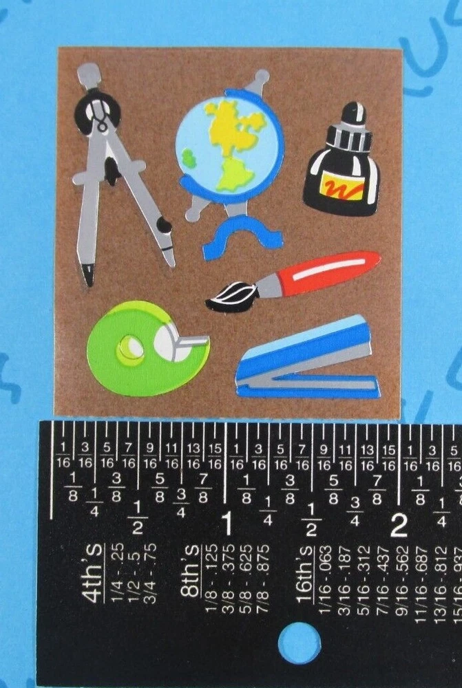 Sticker Mod Is Vintage New. Sticker Brand Is Sandylion. Sticker Theme Is School Supplies. Sticker Is On A Rare Dark Brown Backing. When Purchasing Multiple Sticker Sheets Or Packs Please Add All Items To Cart Before Purchase So That Your Purchase Combines Down To Base Shipping Price. When Purchasing Multiple Sticker Sheets or Packs Please Add All Items To Cart Before Purchase So That Your Purchase Price Combines Down To Base Price Shipping. All items are shipped WITHOUT tracking in an envelope with cardstock.