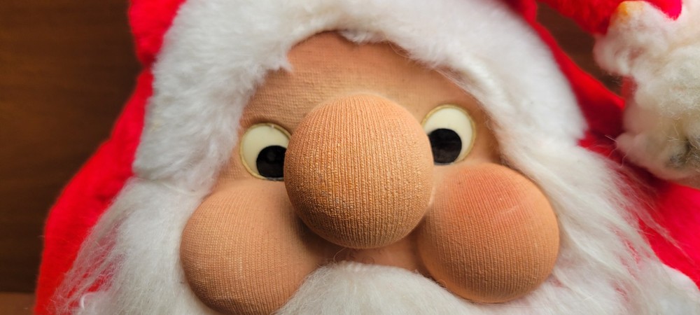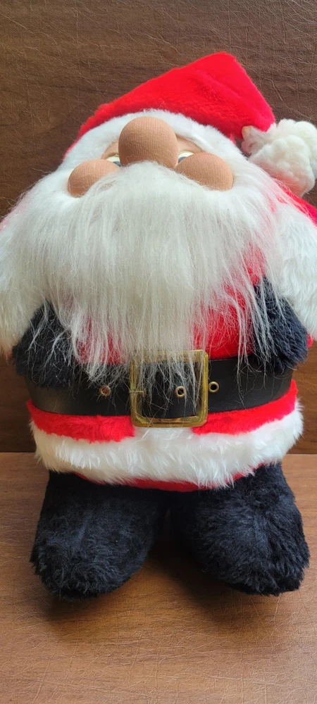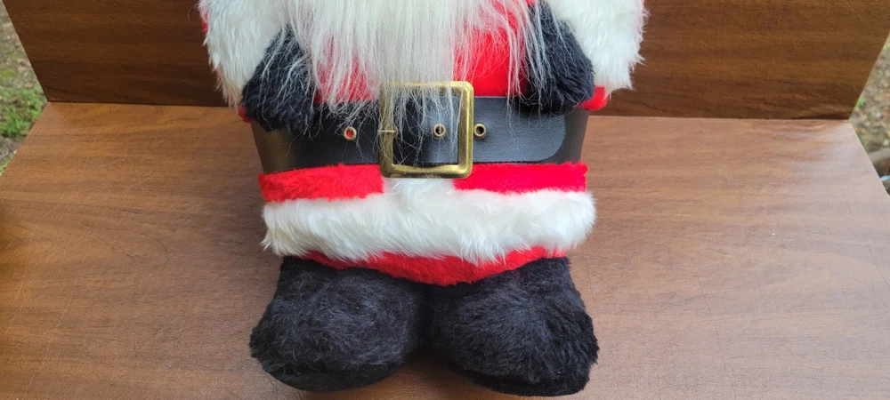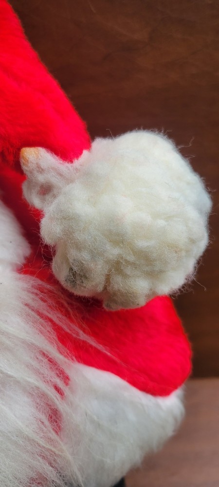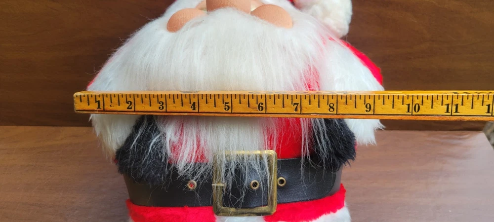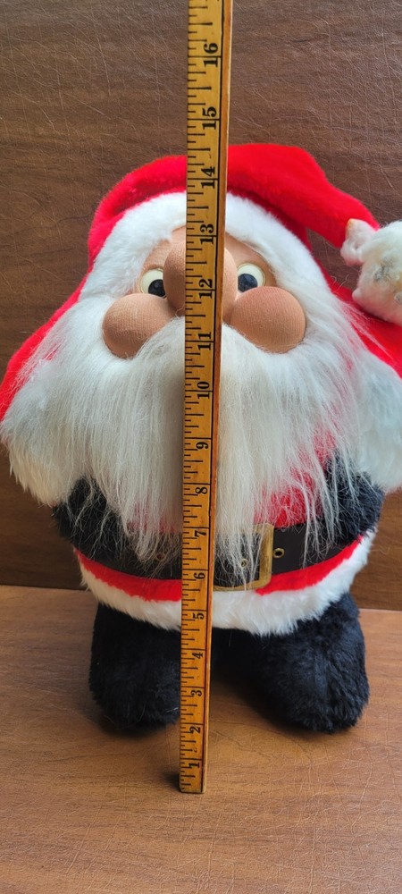 Approx 15" tall. Unique santa, i cannot read his tag though. Has been in storage. His puff ball at the end of his hat could use some cleaning. Good shape for his age. I ship out next business day! **My inventory comes from estates, yard sales, and other pre-owned sources. I cannot guarantee a completely smoke-free or pet-free history. I do use an ozone machine to reduce odors, but some lingering scent may still be present due to age or previous storage conditions.**