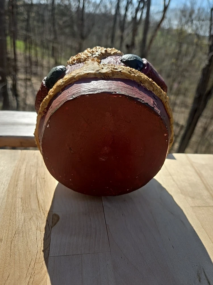 This vintage hand-painted chalkware figurine features a jolly round Santa with a rustic red suit. The medium-sized figurine measures 6x6x6 inches and is perfect for adding some festive art decor to your Christmas collection. The original piece was manufactured in the 1960s and has a unique folk art charm. The figurine is made by Fairfield and is a great addition to any holiday or seasonal collection. The chalkware material adds a unique texture and feel to the piece, while the hand-painted features make it a one-of-a-kind item. Display this rustic Santa figurine on a mantle or shelf to add some holiday cheer to your home.