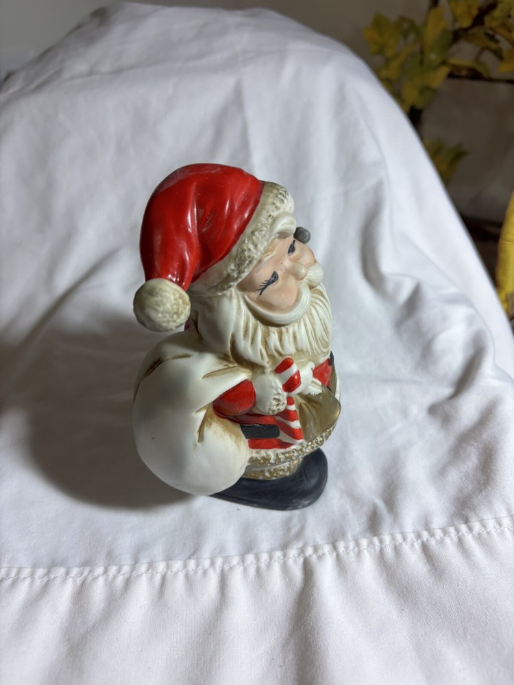 This vintage Santa porcelain bank is a beautiful addition to any holiday collectibles. The hand-painted design is exquisite and the attention to detail is impressive. Made in Japan in 1960 by Ecomco, this bank is a true gem for collectors. New with original package, but no box. Marking on bottom Japanese cross sword and sticker intact, original stopper With a bright red color and a unit quantity of 1, this bank is perfect for Christmas decorations or as a unique gift. The bank is also handmade, adding a touch of personalization to an already special piece. Don't miss out on this rare find from the 1960s. Returns accepted within 30 days; buyer pays return shipping