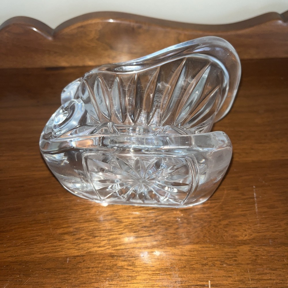 Elevate your holiday decor with the St George Santa Sleigh, a vintage candy dish that exudes elegance and yuletide charm. Crafted from lead crystal, this piece showcases a classic design of Santa's sleigh, complete with intricate detailing that captures the essence of Christmas cheer. Dating back to the 1990s, this sleigh is a beautiful representation of the craftsmanship from that era. It's ideal for serving treats during your festive gatherings or as a standout decorative item on your mantle or table. With its timeless appeal and sparkling clarity, it brings a touch of sophistication to any holiday setting.