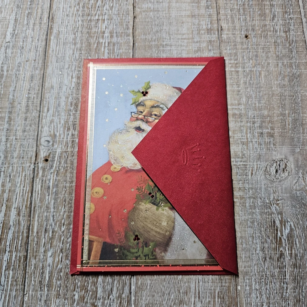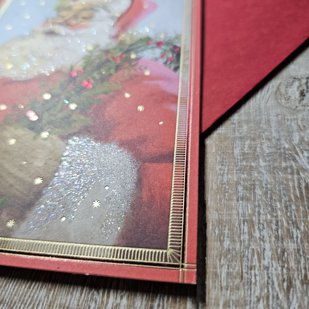 Hallmark Christmas Greeting Card 5x7 Old World Santa Snow Glitter Red Berries 5" x 7" card with matching envelope Condition: new Search thousands of cards for all occasions in our eBay Store. **This items ships with limited tracking via USPS First Class.** **The standard time is 5-7 business days for delivery but it may take up to 10 days.**