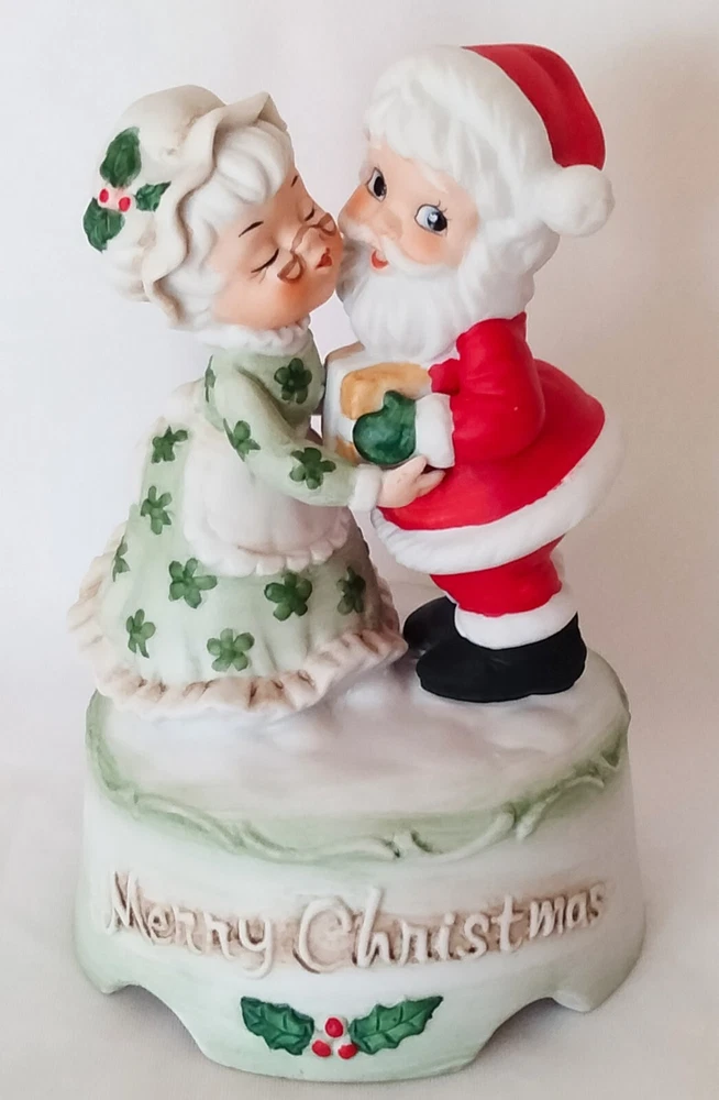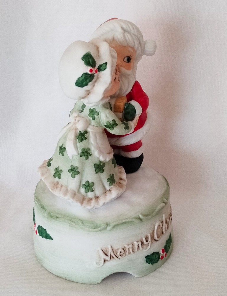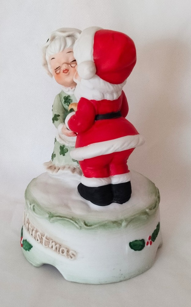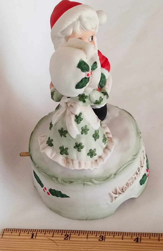 Elevate your festive decor with the charm of yesteryear with this Vintage "Merry Christmas" Santa and Mrs. Claus Dancing Wind Up Music Box. Crafted from high-quality ceramic porcelain, this medium-sized figurine features a delightful dancing scene with a classic matte finish, bringing a touch of nostalgia to your holiday celebrations.The piece is beautifully presented in a red, green, and white color scheme that captures the spirit of Christmas. As a single wind-up music box, it not only serves as a decorative piece but also plays a melodic tune to add an auditory layer to your seasonal decorations. Proudly made in Taiwan, this unbranded collectible is sure to be a conversation starter and a cherished addition to your Christmas tradition.