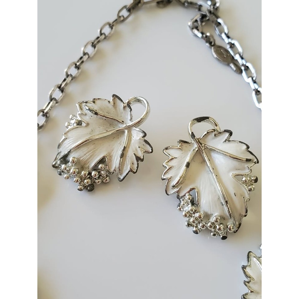 Beautiful white enamel set from the 1960s. Please see all pictures as they are a part of the description. There is some minimal wear with this set. Specifics: Stamp(s): SC and Sarah Cov *Vintage or Estate Jewelry typically exhibits signs of normal wear. Imperfections are a part of the unique character of each piece. Please view all pictures/details provided and feel free to reach out with additional questions. Please note that all measurements are approximate.