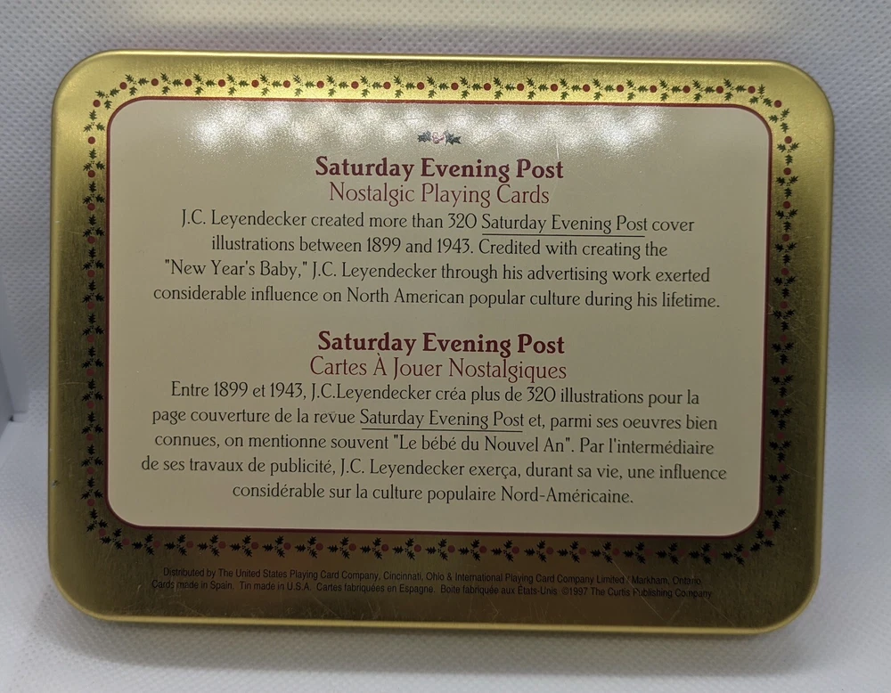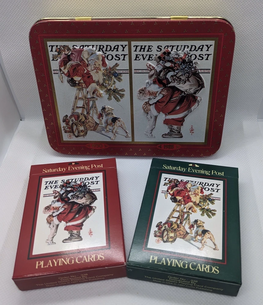 Vintage Saturday Evening Post 2 Decks Playing Cards 1997 Metal Tin