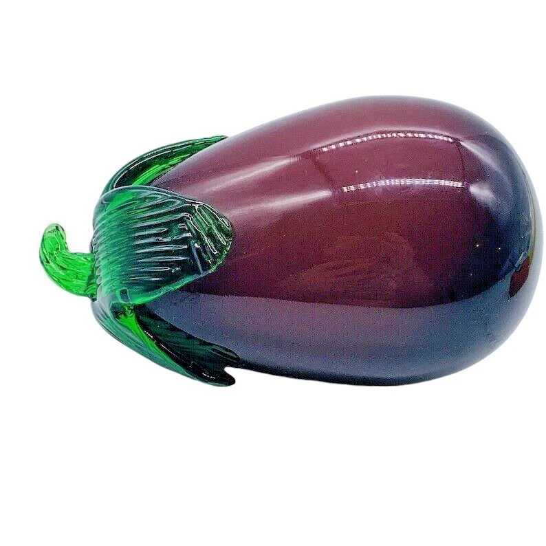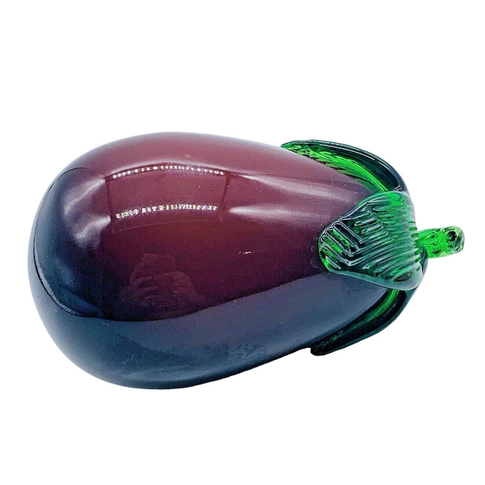 Pattern:SolidAntique:NoCountry/Region of Manufacture:UnknownSigned:NoStyle:ContemporaryVintage:YesItem Length:7inColor:PurpleProduction Technique:Hand Blown GlassSubject:EggplantBrand:UnmarkedOriginal/Licensed Reproduction:OriginalProduction Style:Art GlassMaterial:GlassTime Period Manufactured:1980-1989Handmade:YesType:DecorTheme:Fruit & Vegetables, Studio