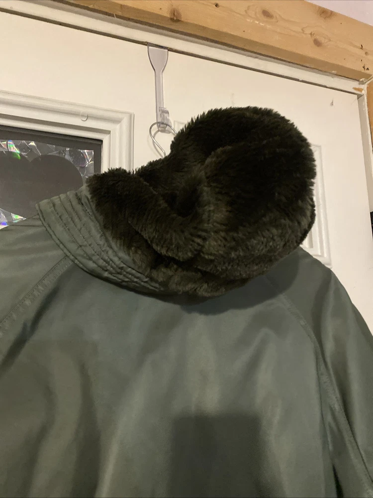 Vintage Sears Sportswear Green Snorkel Faux Fur Hooded Parka Jacket Large