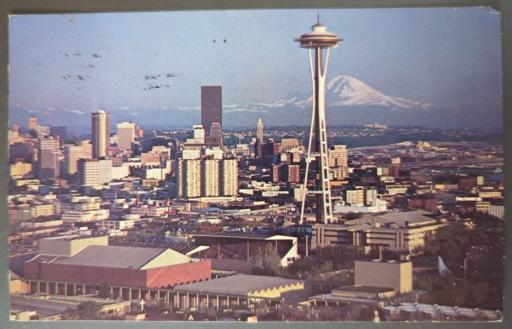 This vintage postcard captures Seattle’s iconic skyline beautifully, with the Space Needle and Opera House standing out. The aged look adds charm—minor wear, stains, or marks tell its history. Perfect for collectors who love authentic retro pieces. Photos show condition clearly, so you know exactly what to expect. A great little piece of nostalgia!