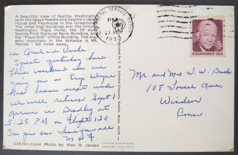 Aerial View Seattle Washington Space Needle Opera House Playhouse VTG Postcard. There may be wear on the edges or a bent or torn corner, staining or writing on the card, creasing, or the card may have a cancellation mark. Most of the postcards I sell are 50 to 100+ years old and will never be perfect. Please examine the photos carefully for more complete condition information. All postcards and greeting cards with a value of less than $20 are shipped via eBay Standard Envelope with a 2 mm postcard sleeve and a piece of cardstock on either side, taped closed with masking tape and placed in a heavy cardboard mailer. Postcards with a value of more than $20 are sent Ground Advantage in a 2 mm postcard sleeve, sandwiched between cardboard and shipped in a padded polybag. Tracking is provided with both methods.