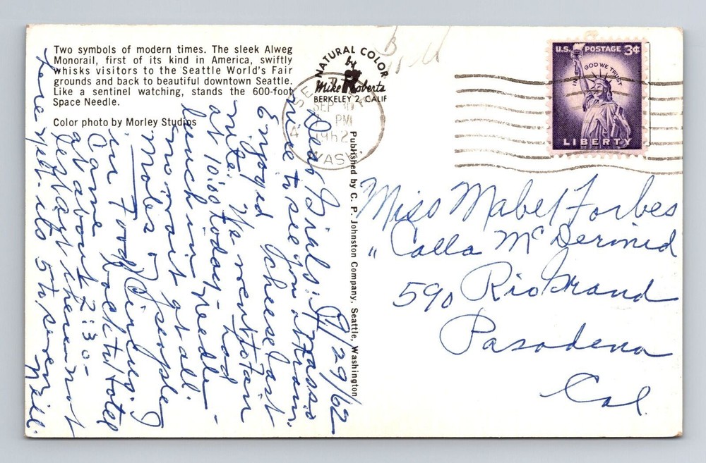 $ 2.64Seattle WA-Washington, Alweg Monorail, Space Needle, Vintage Postcard
